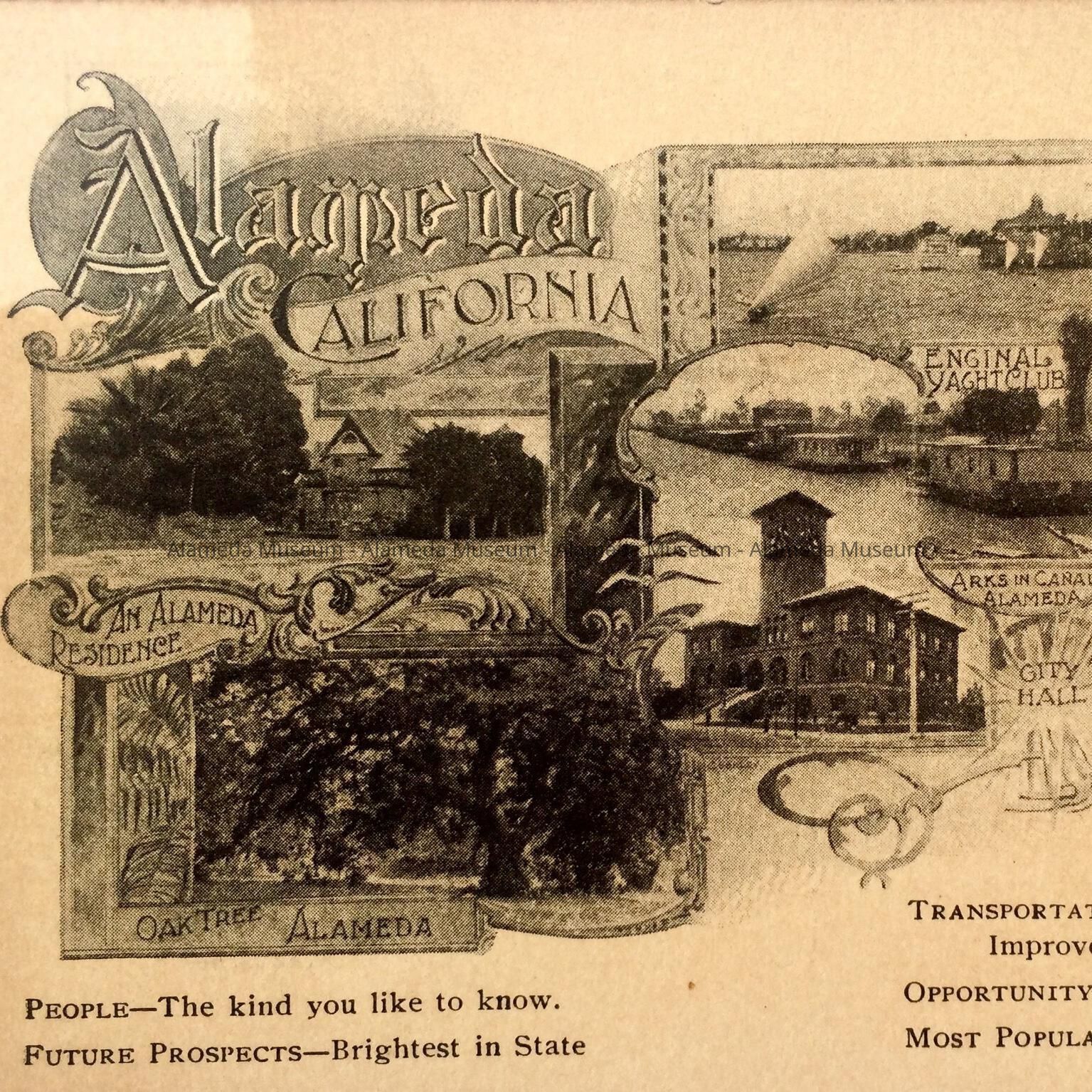 MULTIPLE-VIEW TYPE POSTCARD, WITH SCENES OF THE ENCINAL YACHT CLUB, ESTUARY ARKS, CITY HALL, ETC.