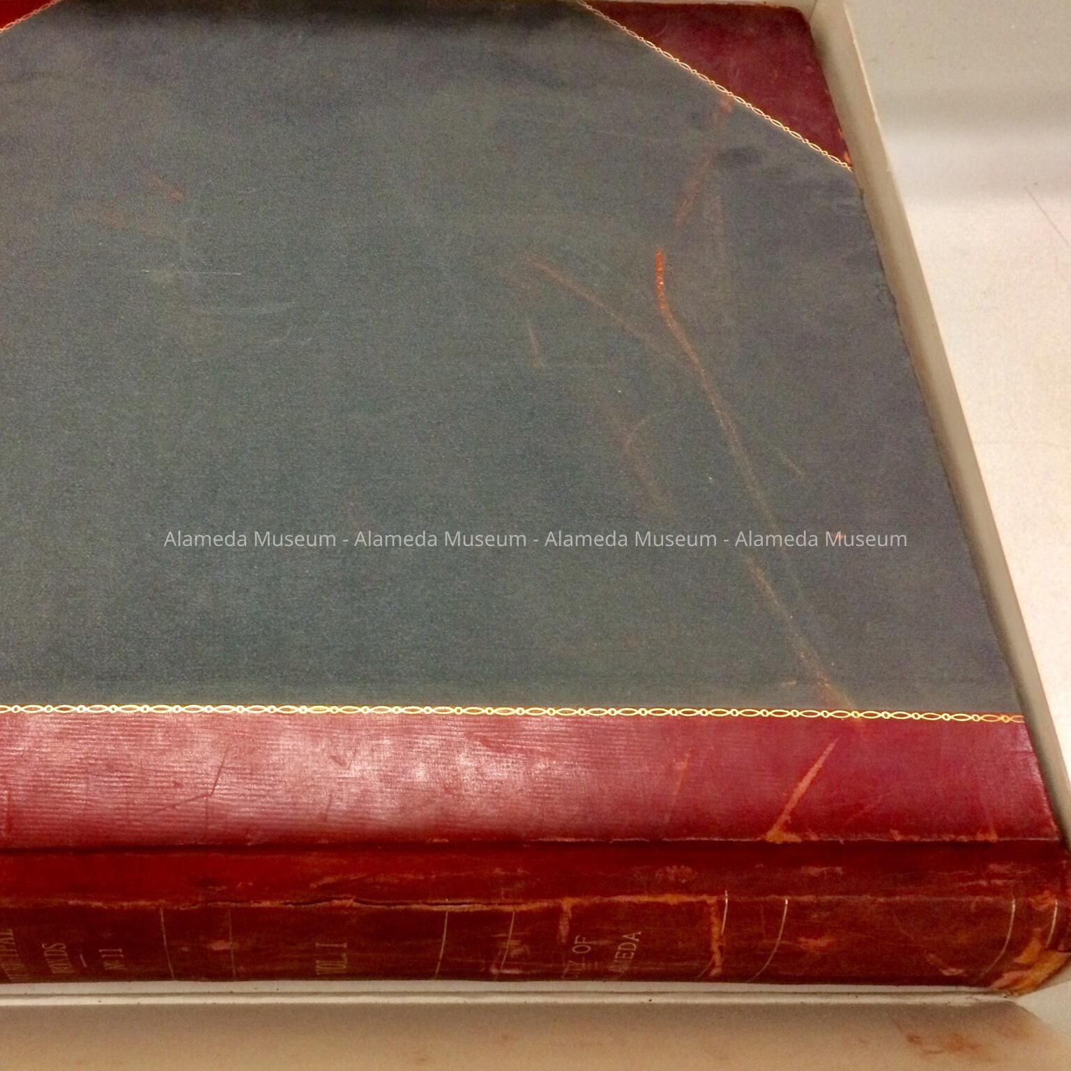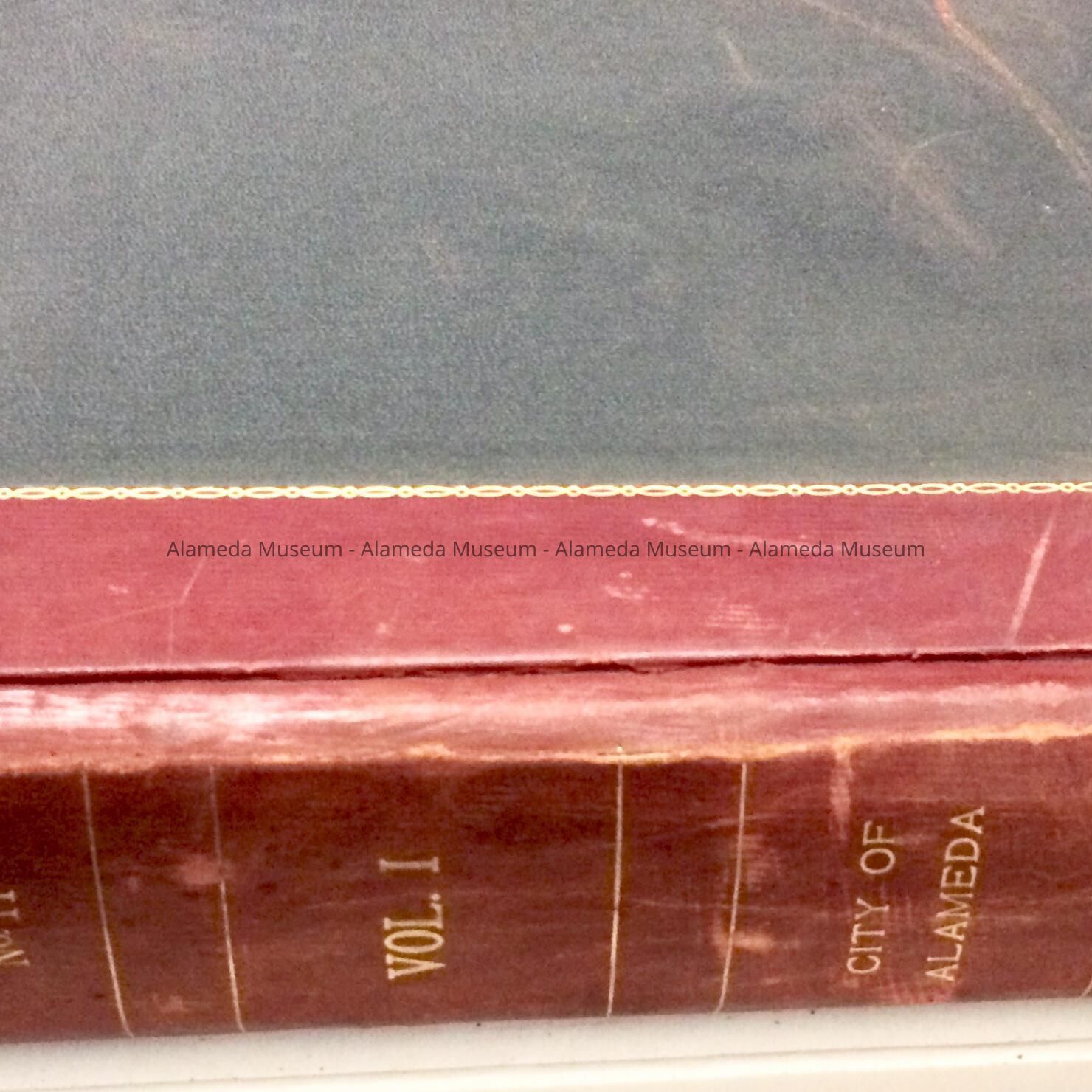 Description: Hard bound book with cover of black colored buckram trimmed in red colored leather accentuated with gold. Spine has caption "Municipal Bonds No. 11 - Vol. 1 City of Alameda".