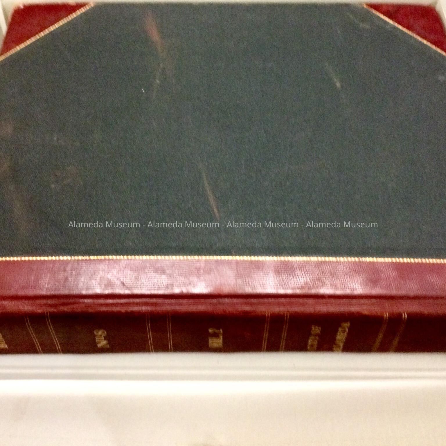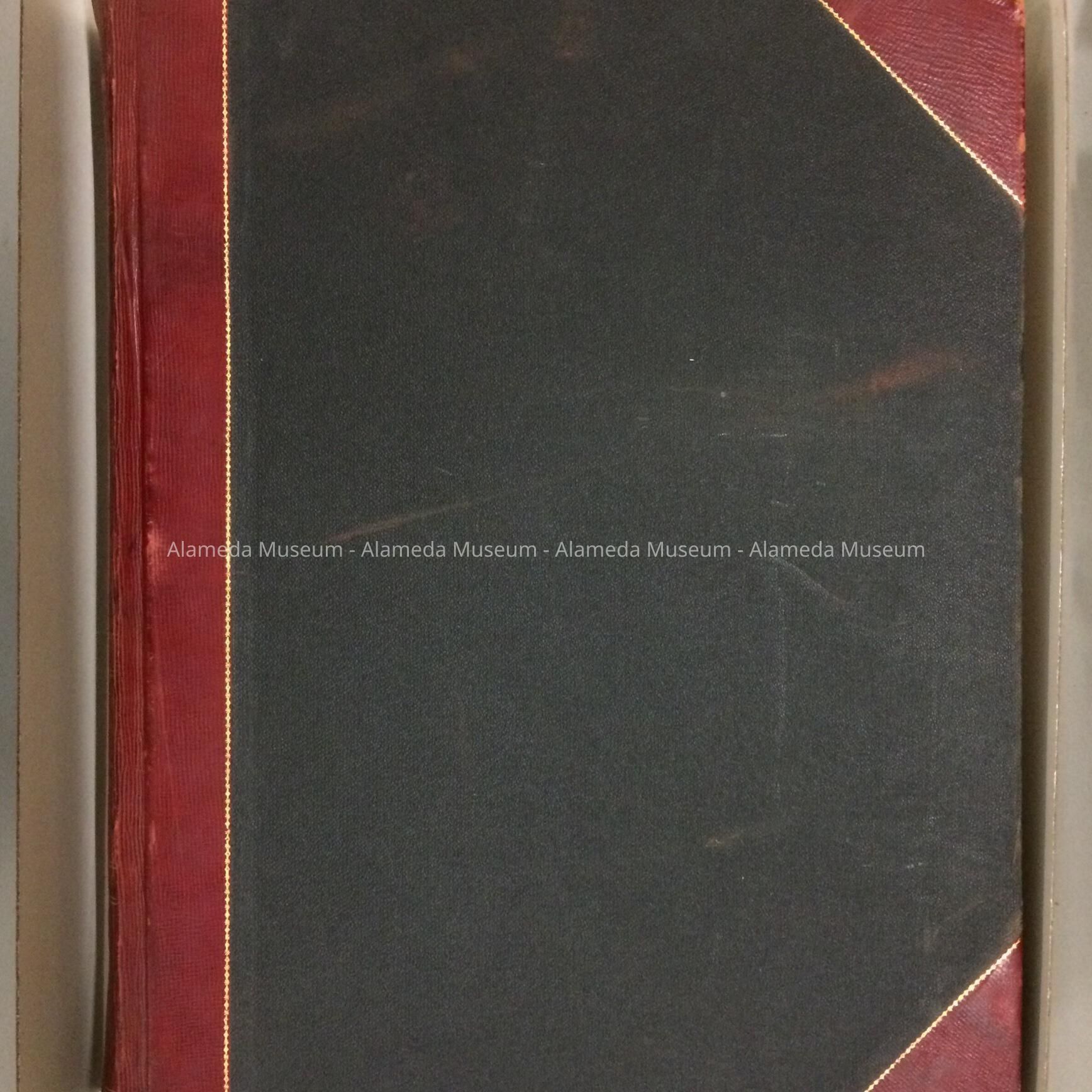 Description: hardbound book with cover of black buckram trimmed in red leather and accentuated in gold. Spine caption: "Municipal bonds, No. 8, Vol 2, City of Alameda". Contents are printed bonds and coupons.