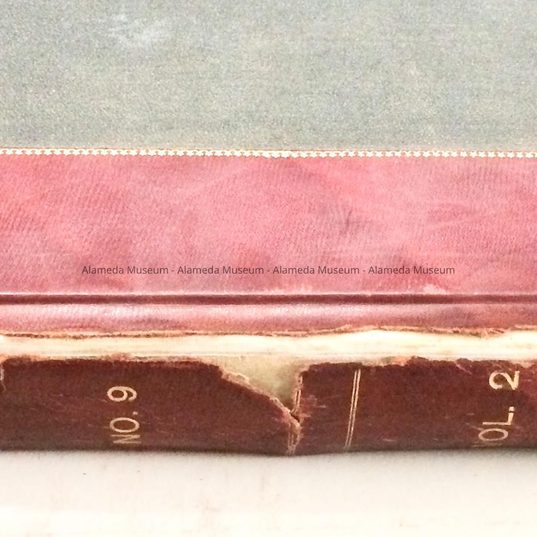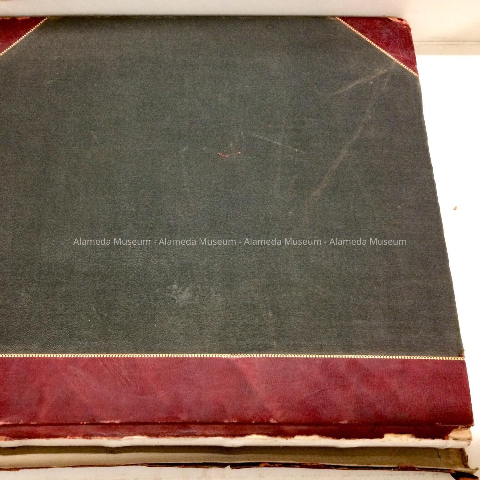 Description: Hardbound book with cover of black colored buckram trimmed in red leather and accentuated with gold. Spine has the caption: "Municipal Bonds, No. 9, Vol 2, City of Alameda".