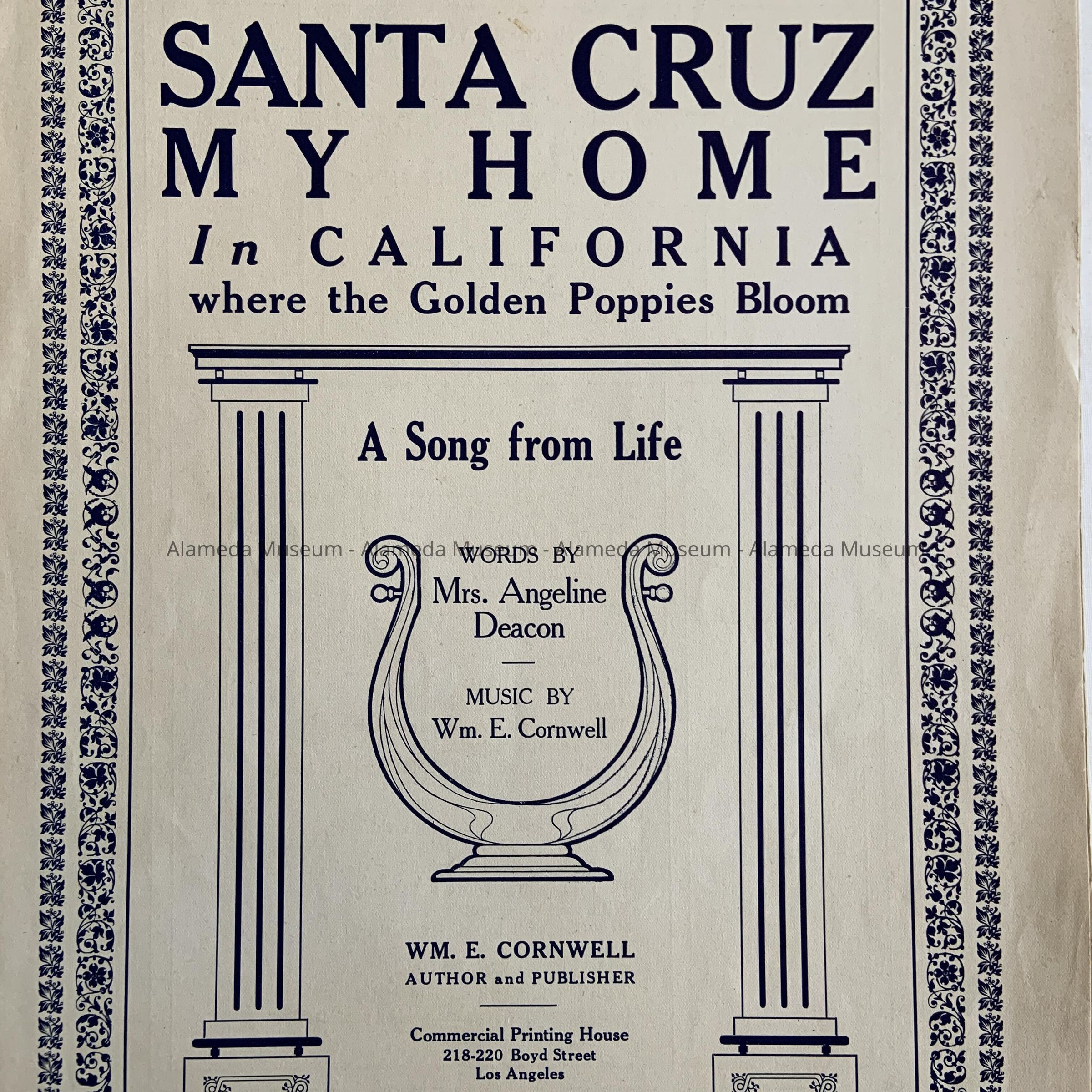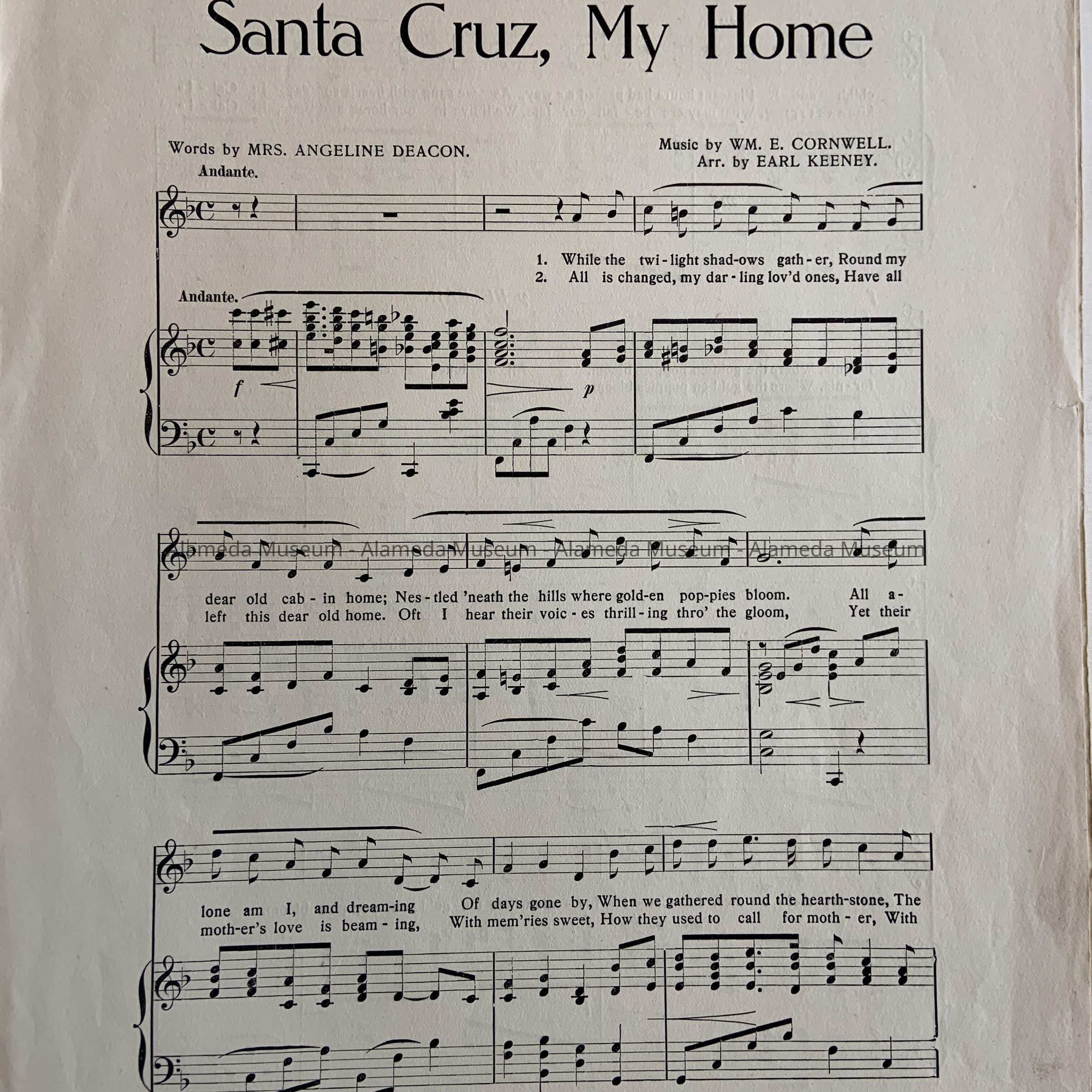 Music Sheet 'Santa Cruz, My Home in California', 1909Entry/Object ID