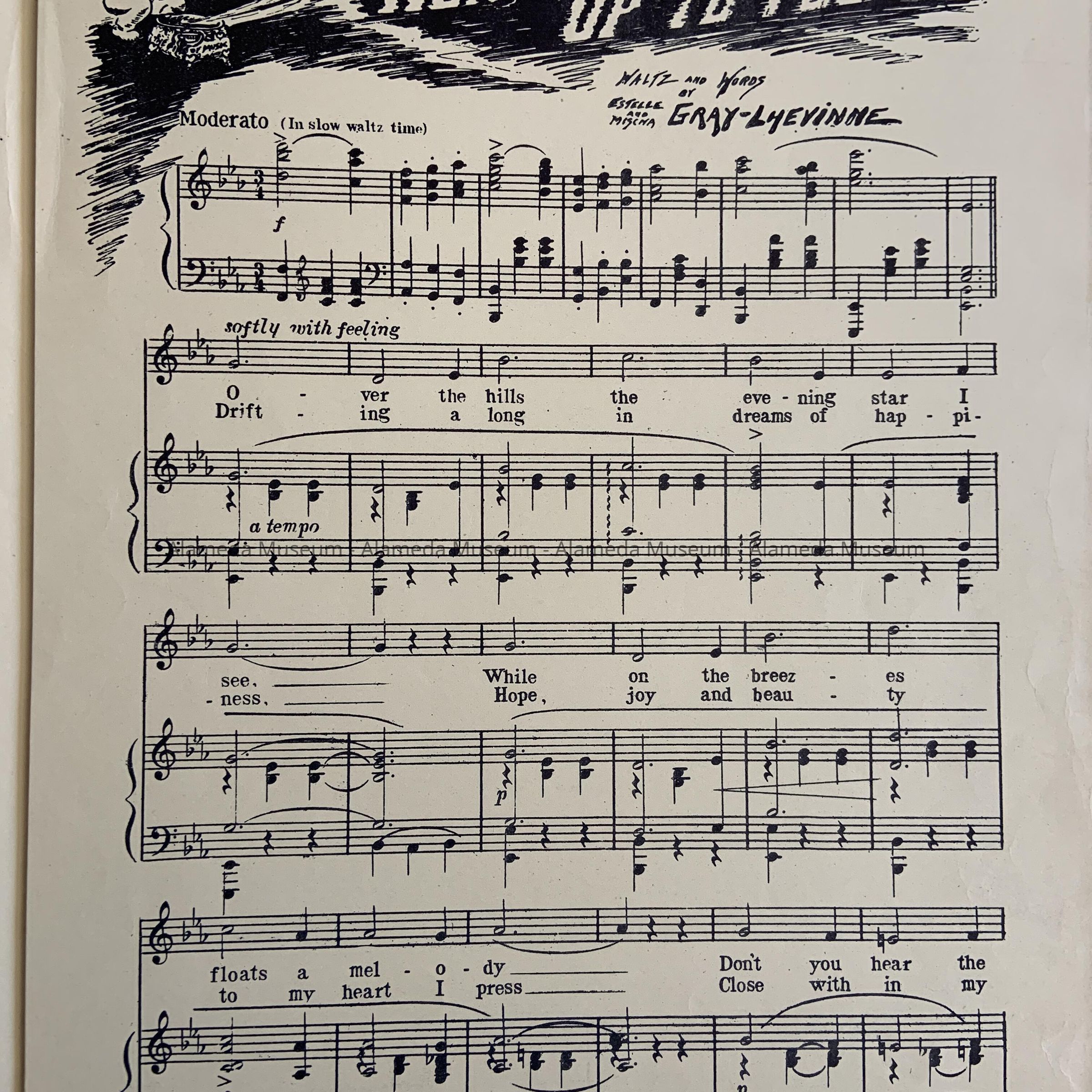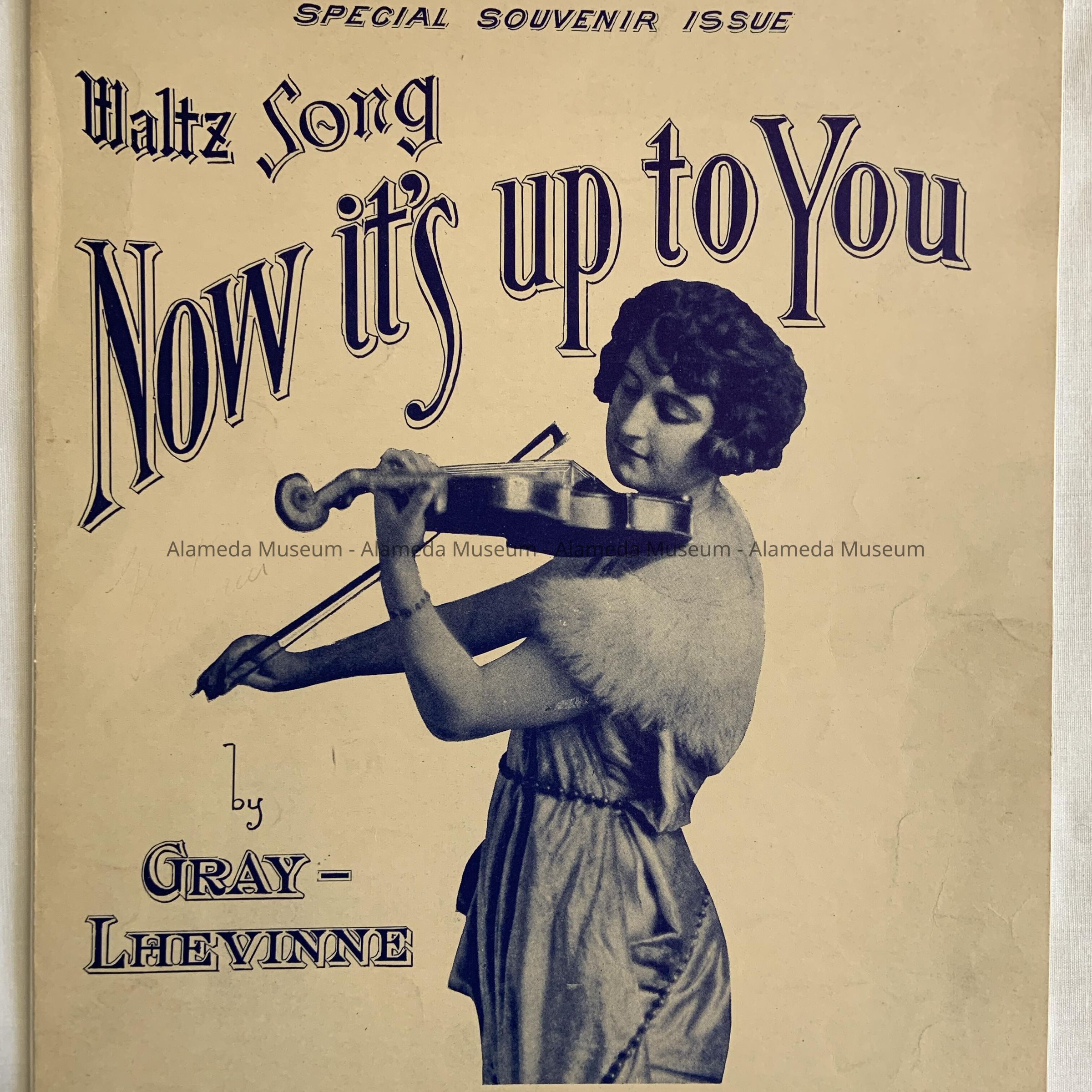 History of Object: MUSIC SHEETS TITLED, "NOW IT IS UP TO YOU." IT IS A TENTH EDITION SPECIAL SOUVENIR ISSUE BY GRAY-LHEVINNE. EXTRA COPIES ARE AVAILABLE FROM HEARTCRAFT, 403-405-407 CENTRAL AVENUE, ALAMEDA, CALIF.