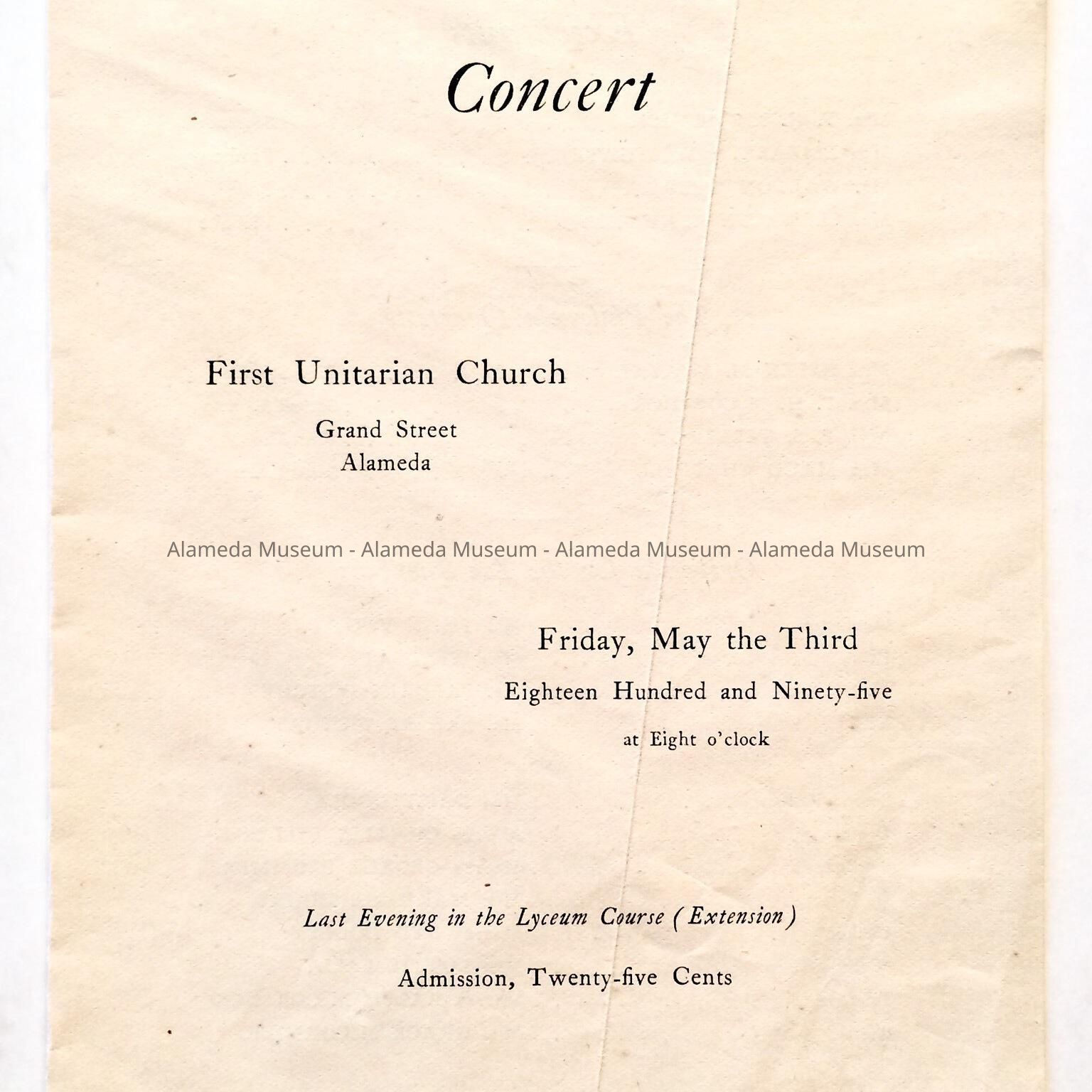 Musical Program presented by Unitarian Church, 1895Entry/Object ID