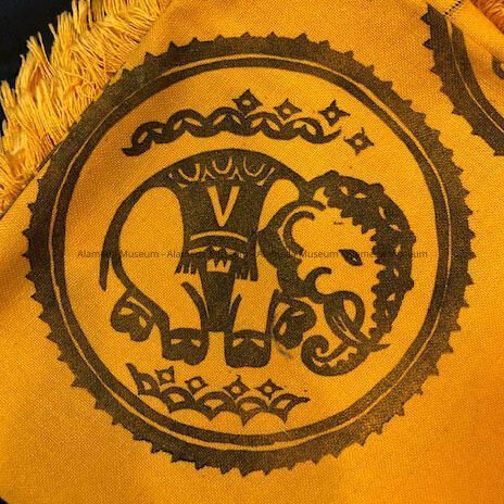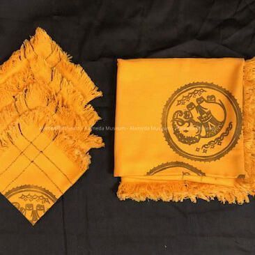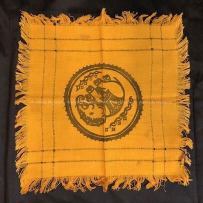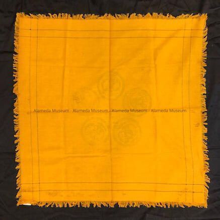 Napkins and Tablecloth of orange-gold linen with pseudo elephant, c. 1930Entry/Object ID