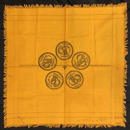 History of Object: Table linen (luncheon set) hand decorated by Maude E. Fischer Baker, daughter of Charles F. Fischer, stepson of Denis Straub. Mr. Fischer was a plumbing contractor. He married Agnes Thomsen and had two daughters, Maude E. & Edna Margaret. Maude studied art design at the S.F. Art Institute, San Francisco. As an art student she worked on murals (private dining-room) in the then new "Mark Hopkins Hotel," San Francisco (opened Dec., 1926).