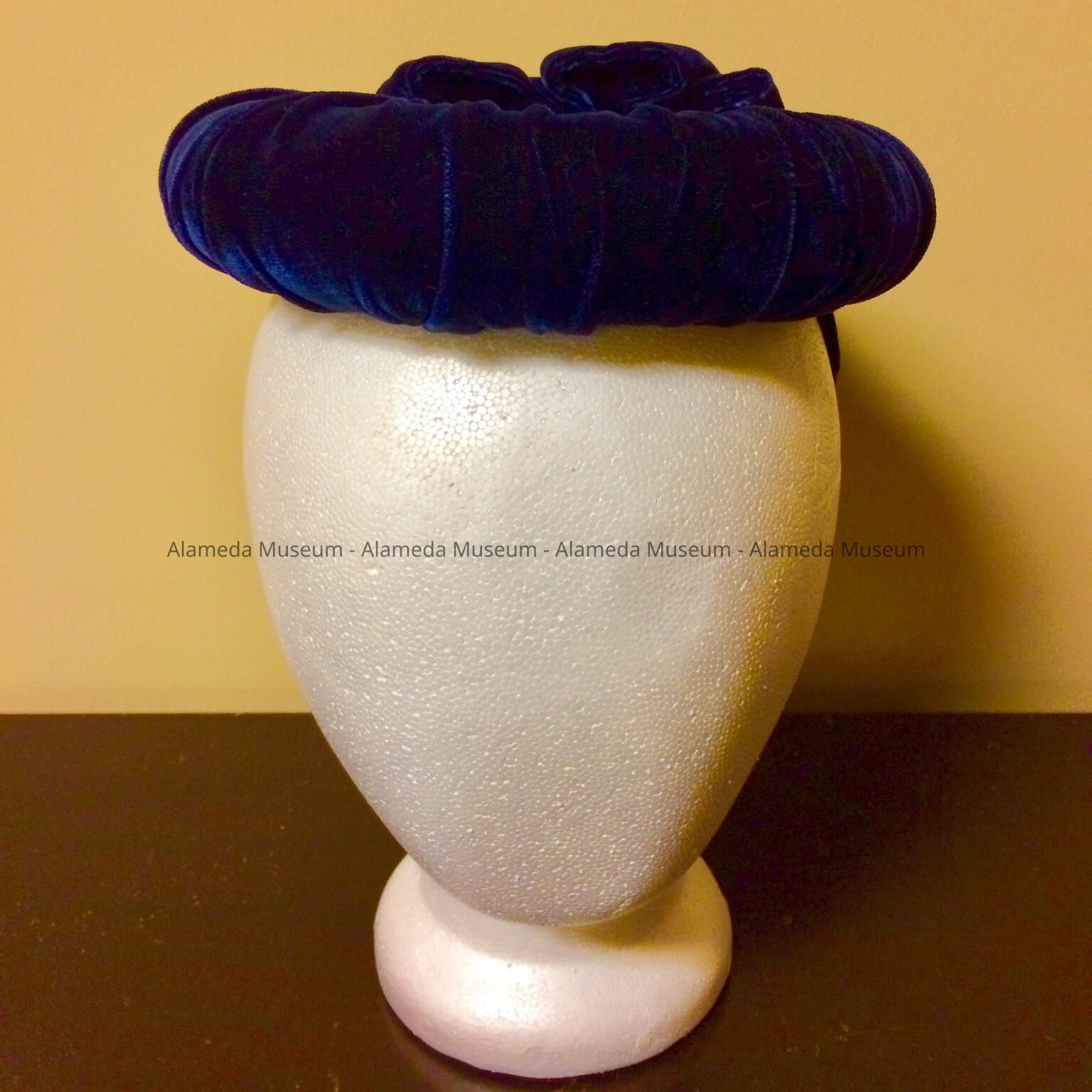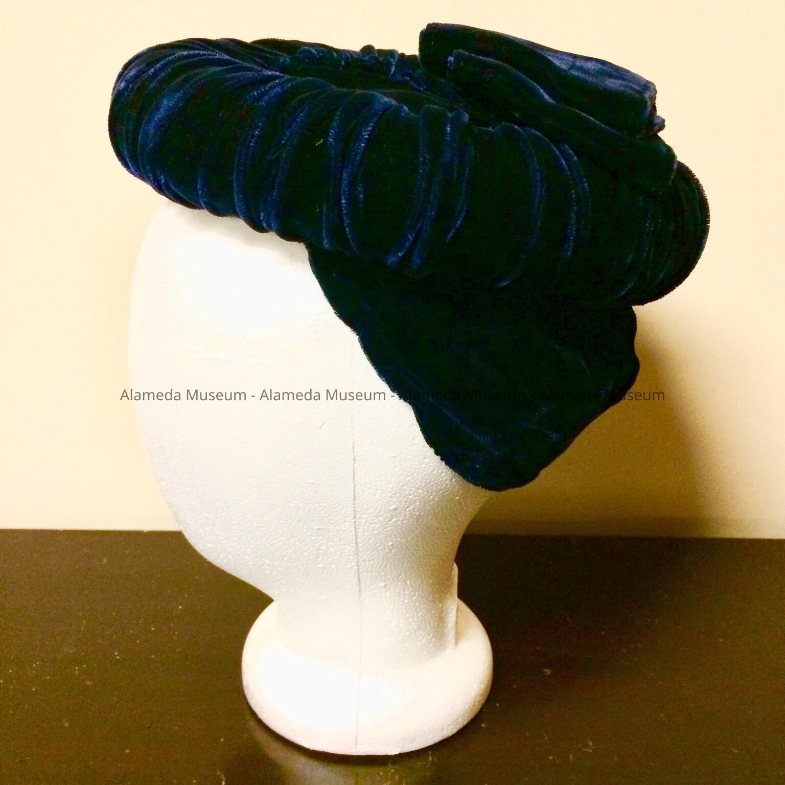 Navy blue matte velvet modified turban cocktail hat, 1940sEntry/Object ID