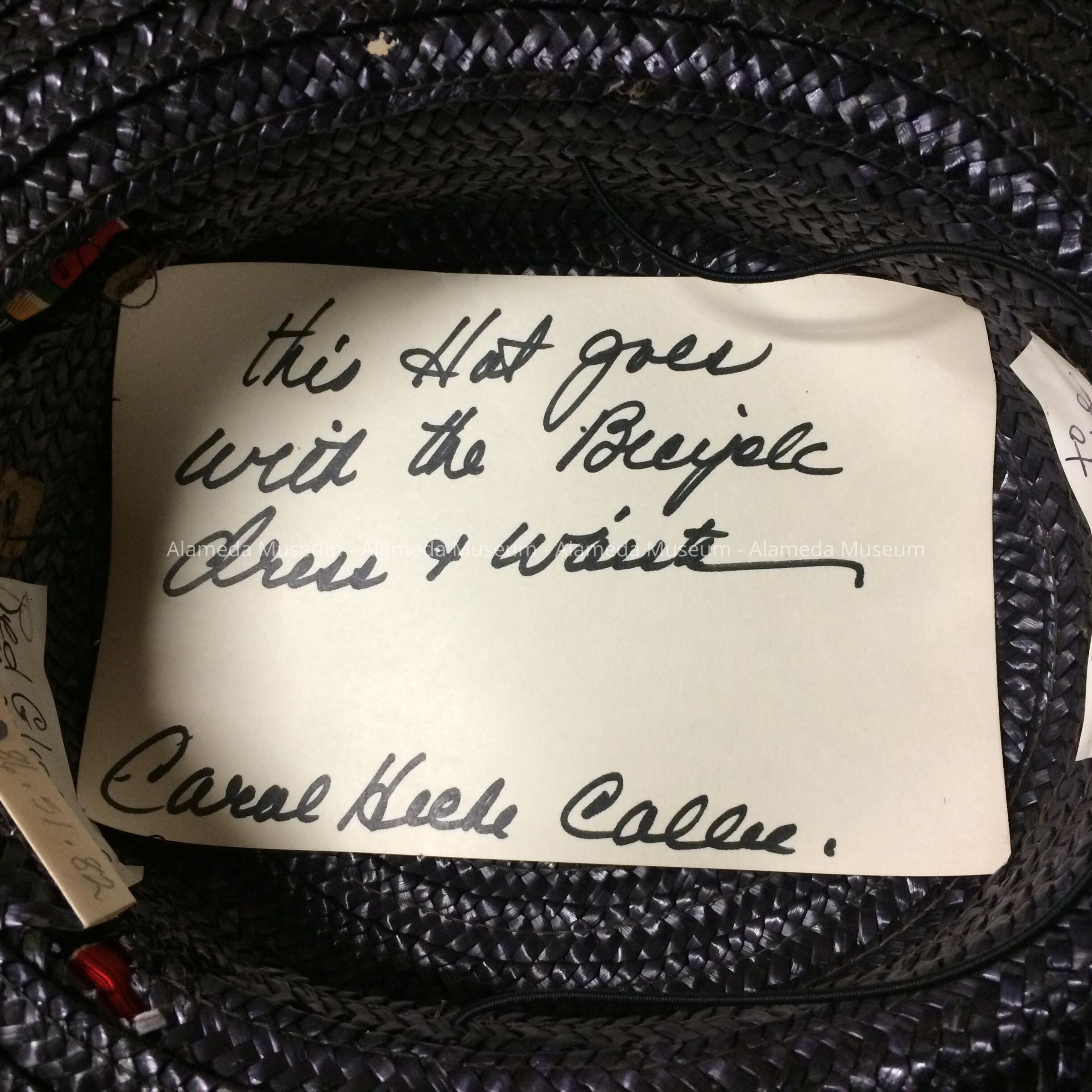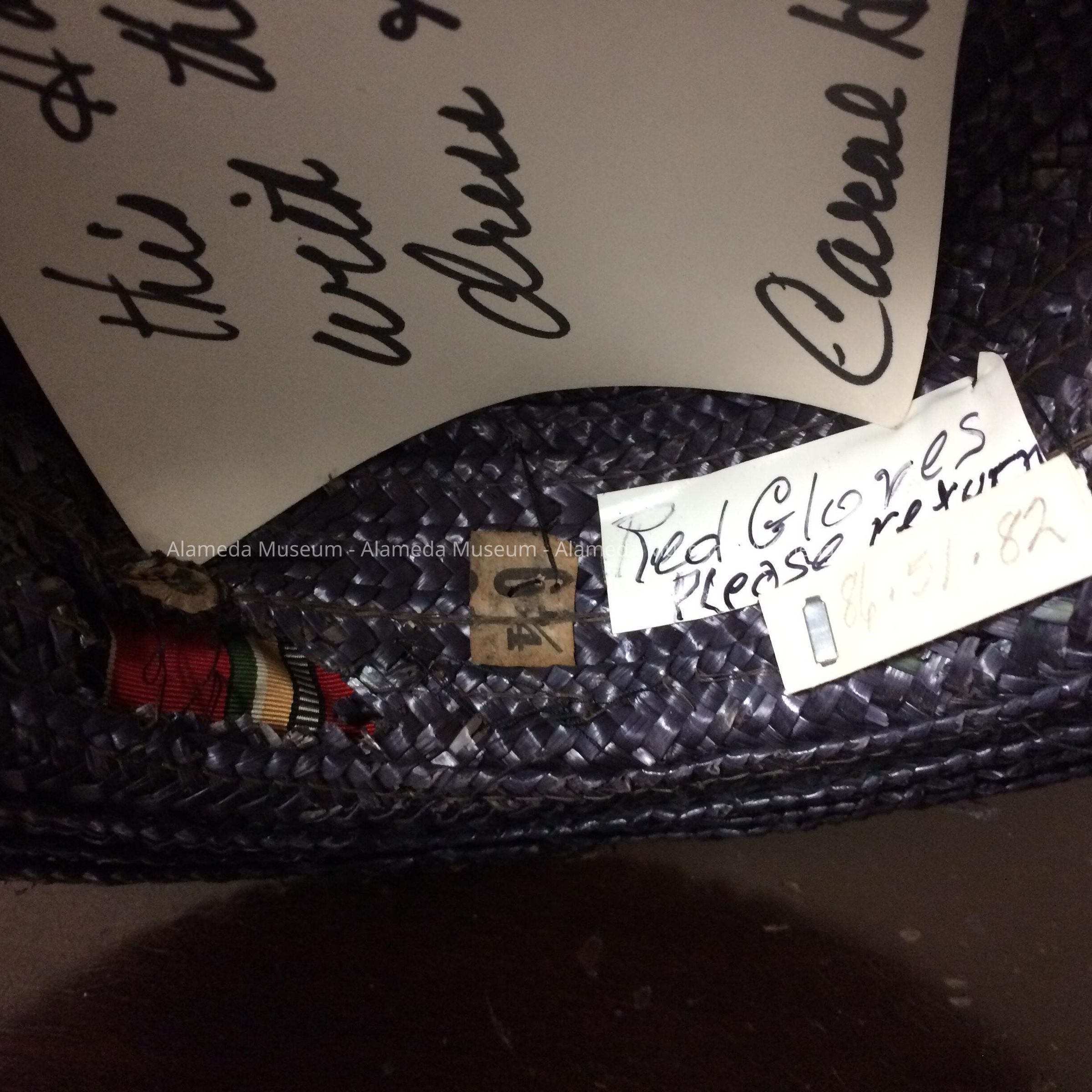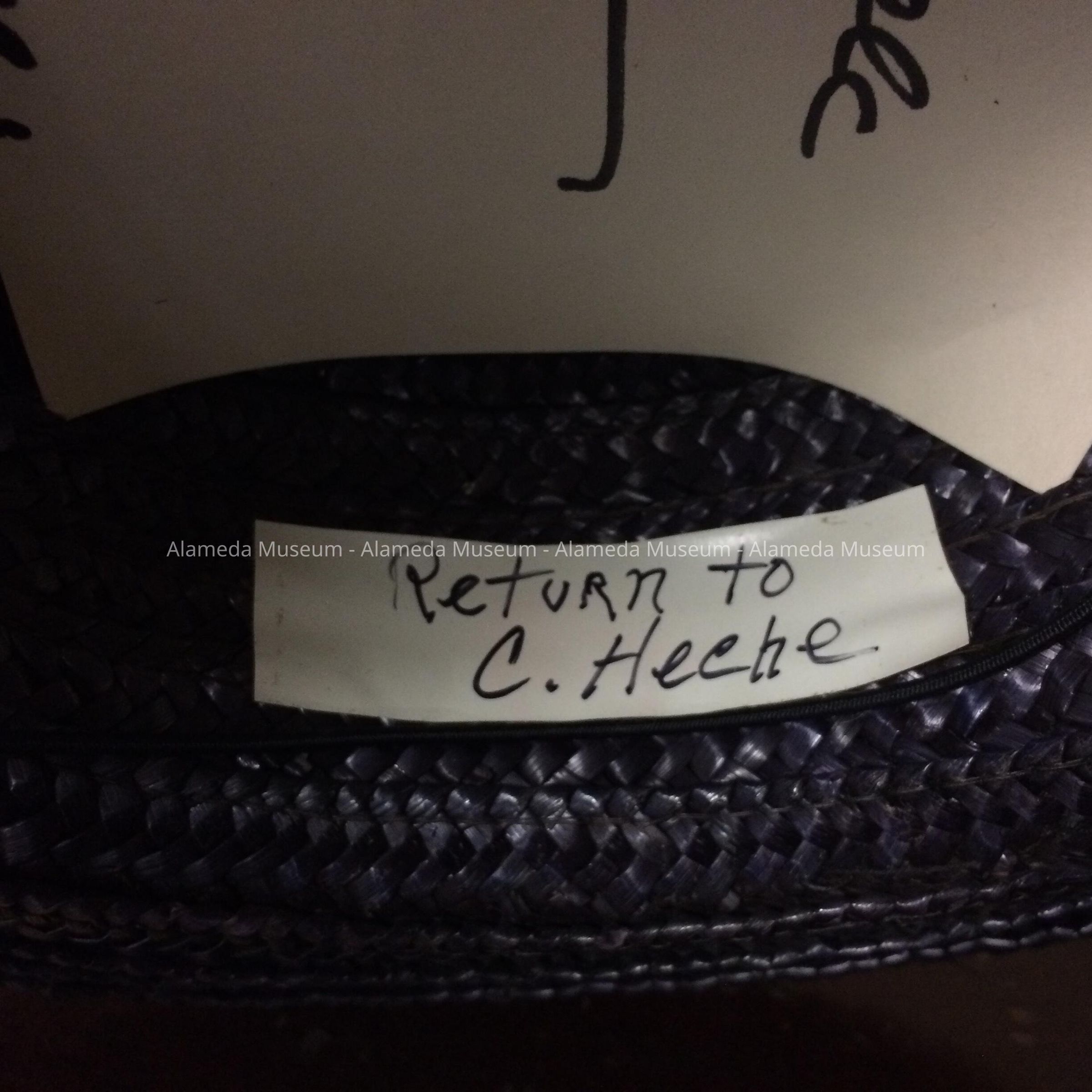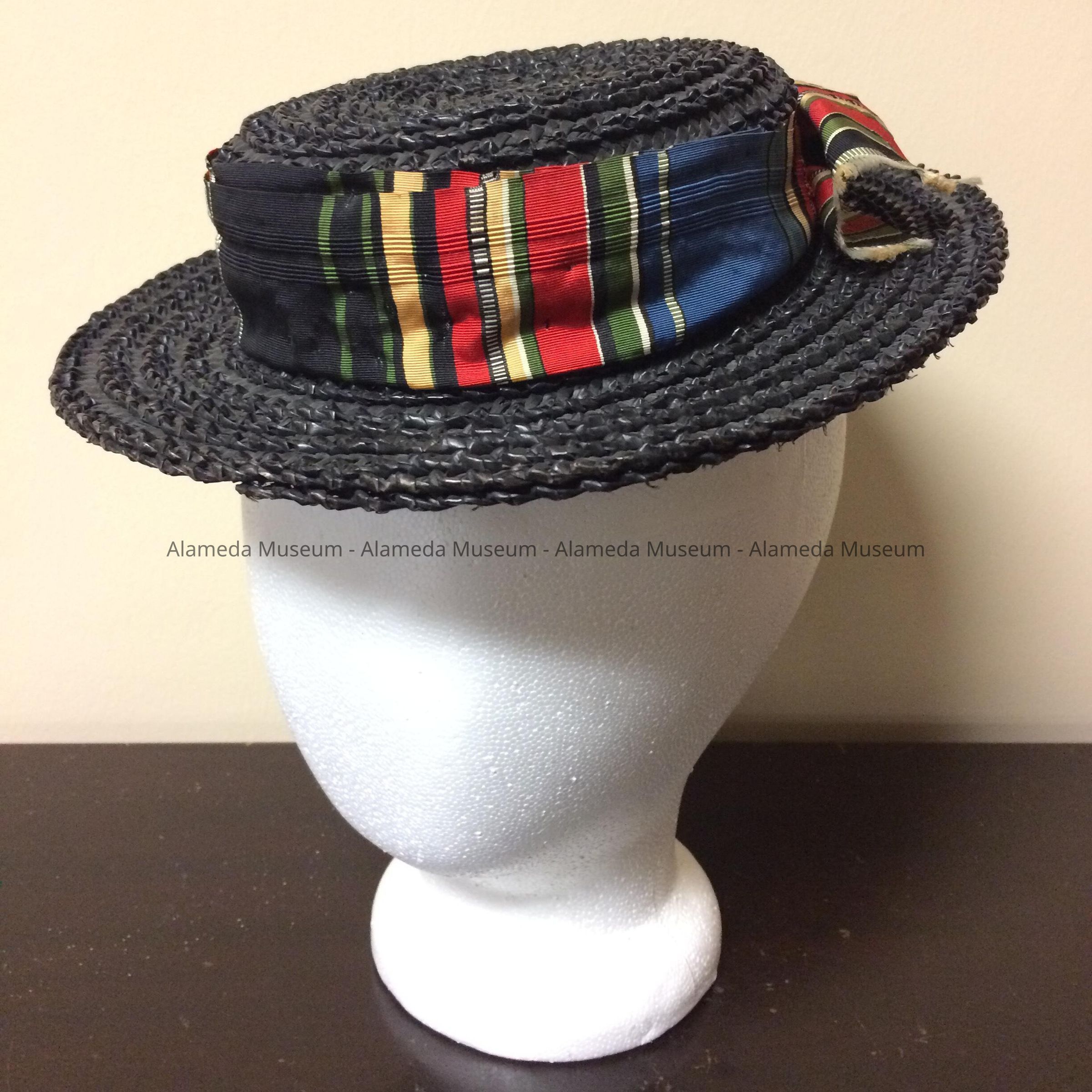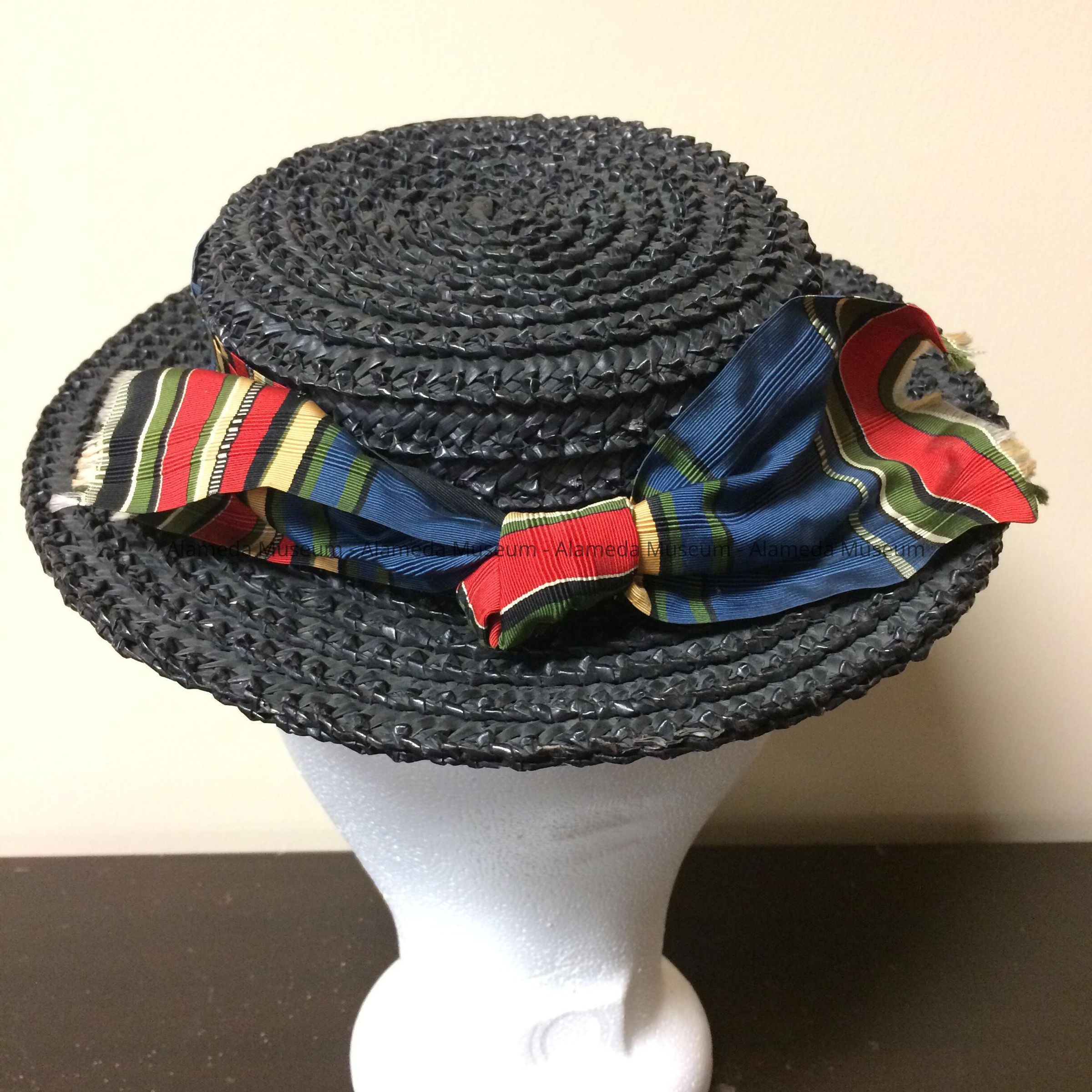 Navy blue straw boater hat with flat crownEntry/Object ID