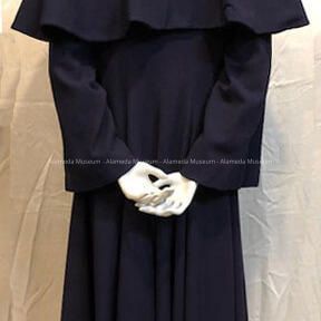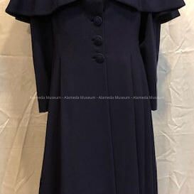 Navy blue wool crepe coat with removable cape, c. 1949Entry/Object ID