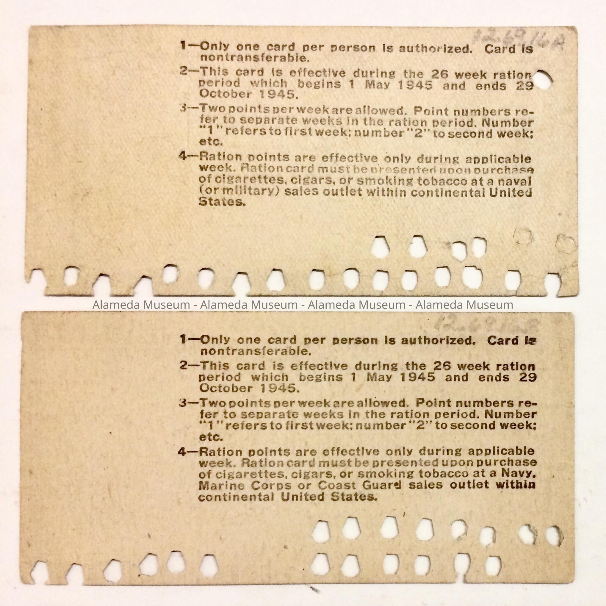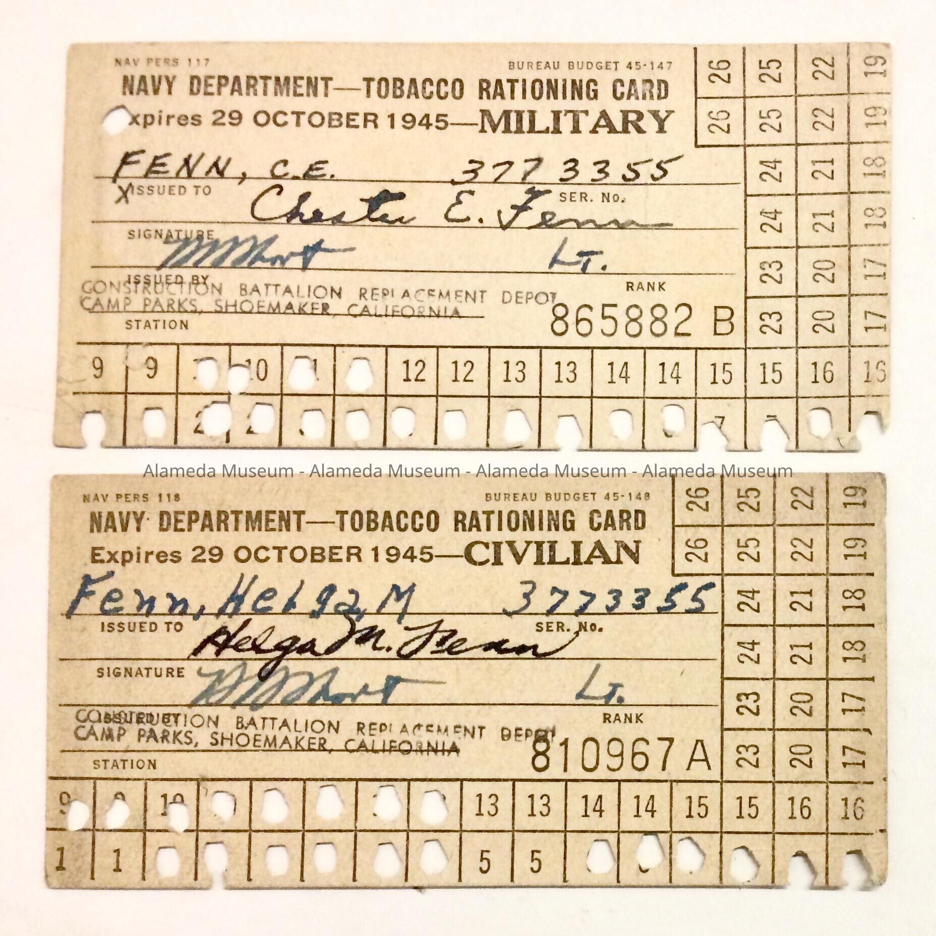 Navy Department Tobacco Ration Cards issued to Chester and Helga Fenn, 1945Entry/Object ID
