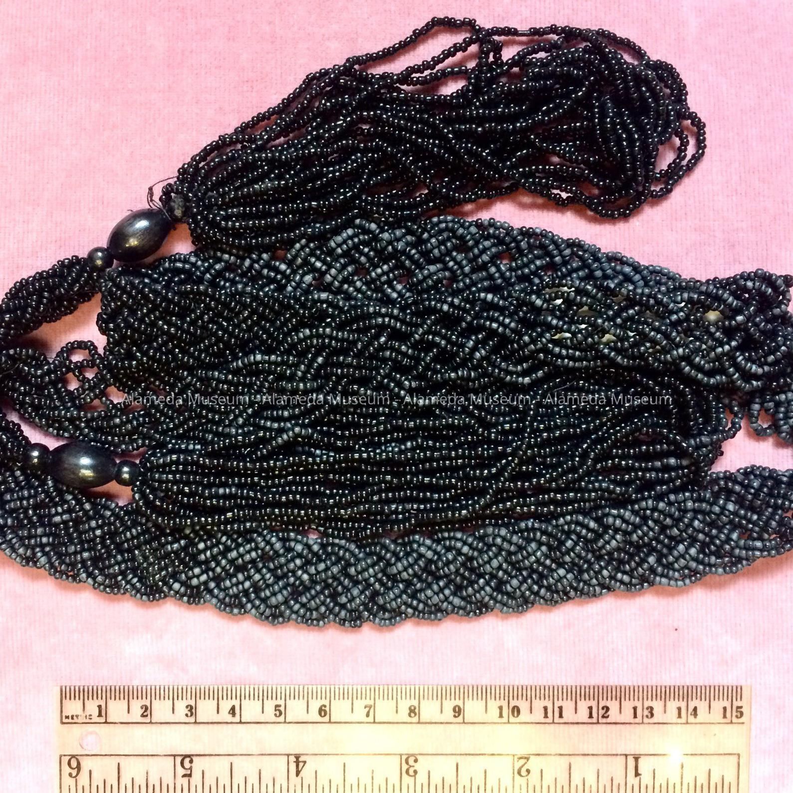 Necklace of woven black glass beads and beaded tassles, early 1900sEntry/Object ID