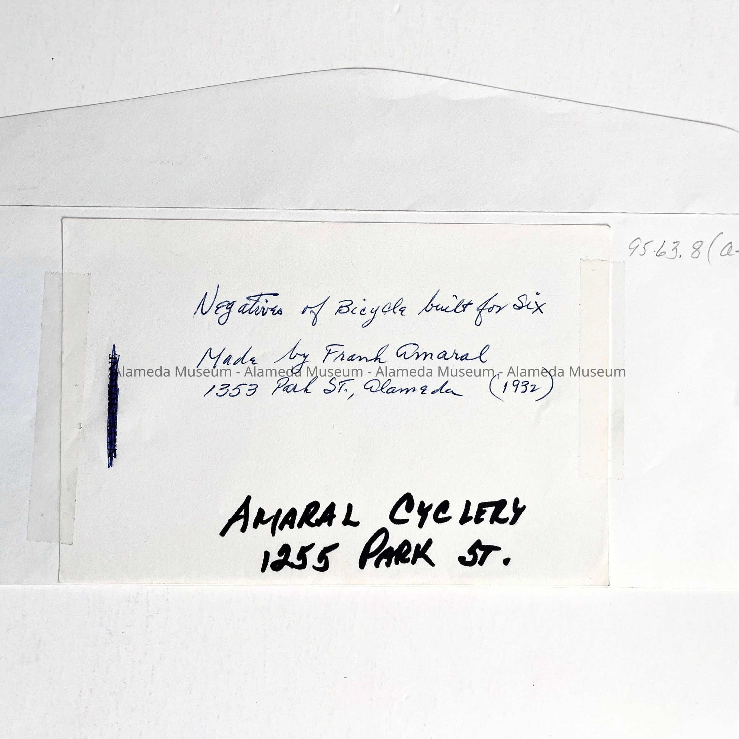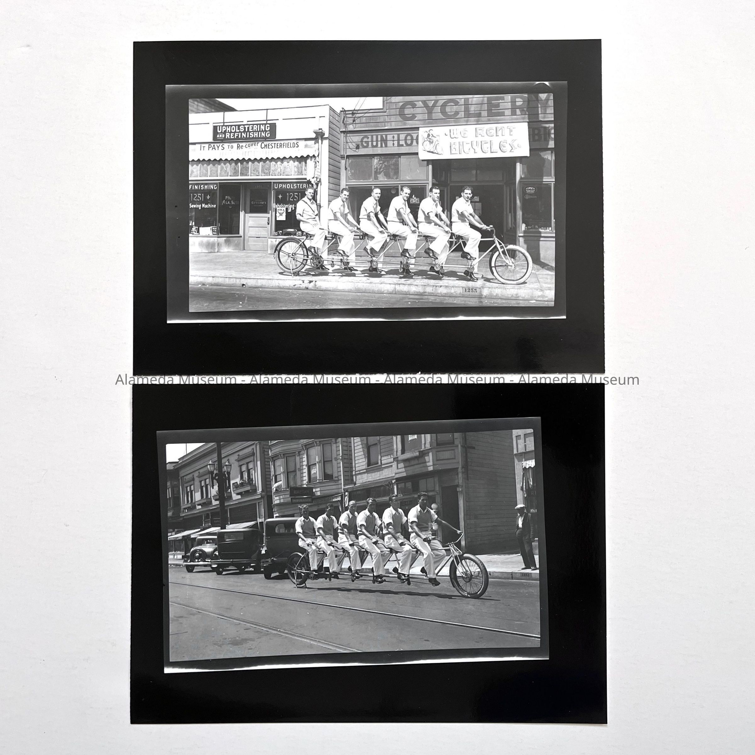Negatives and a contact print of each of six men on Amaral's tandem, c. 1931Entry/Object ID