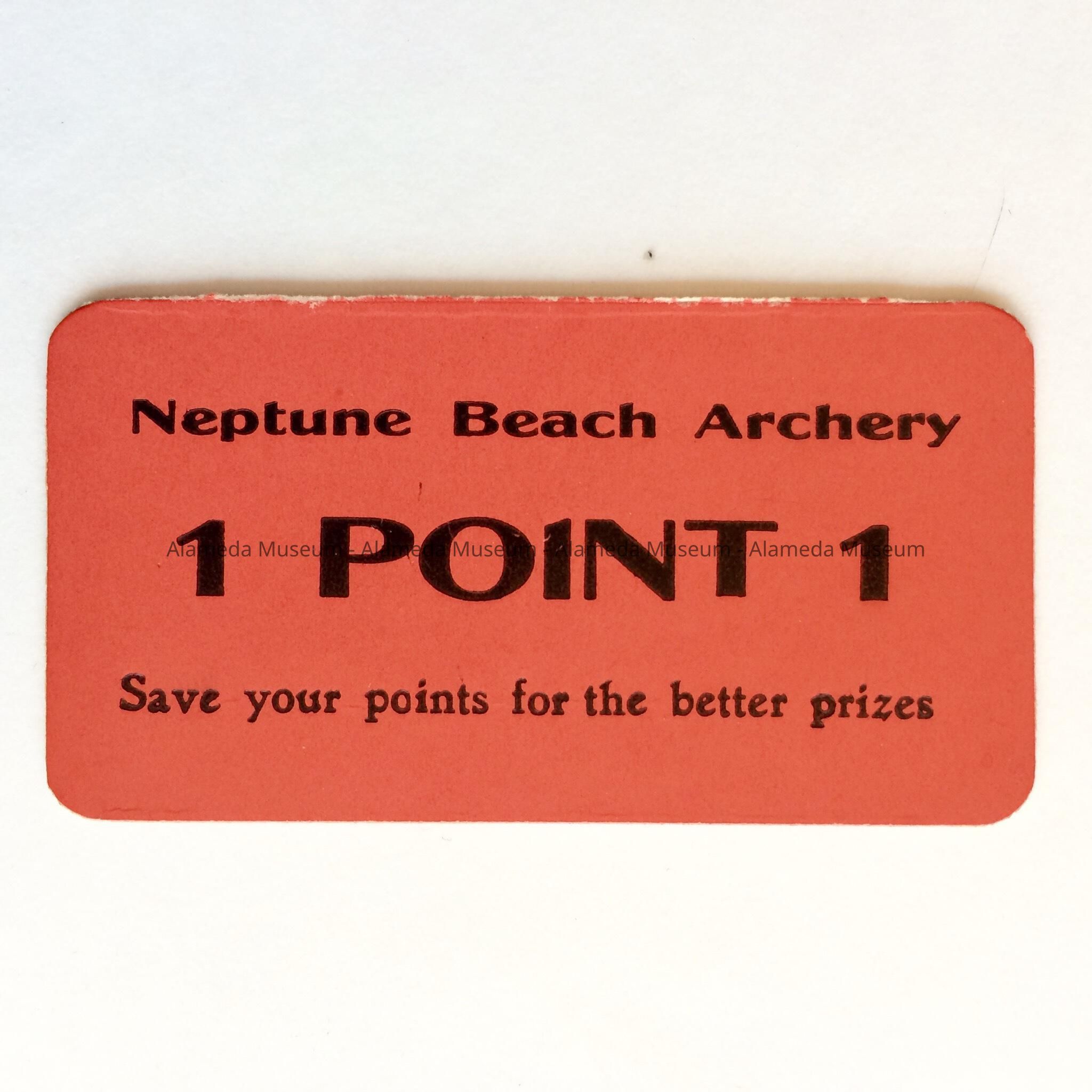 HISTORY OF OBJECT: A TICKET STATING, "NEPTUNE BEACH ARCHERY, 1-POINT."