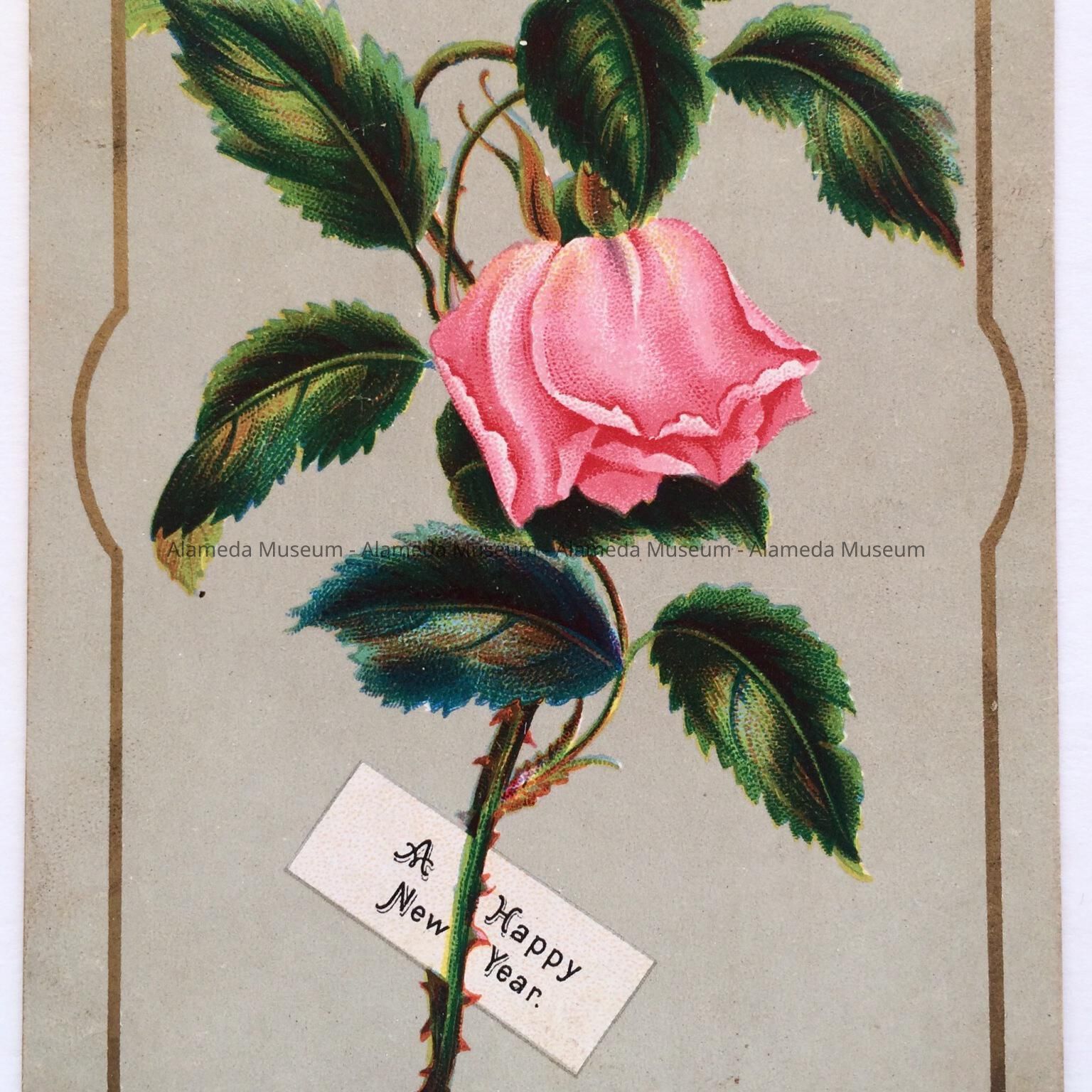 New Year's Greeting Card depicting one pink rose, c. 1880sEntry/Object ID