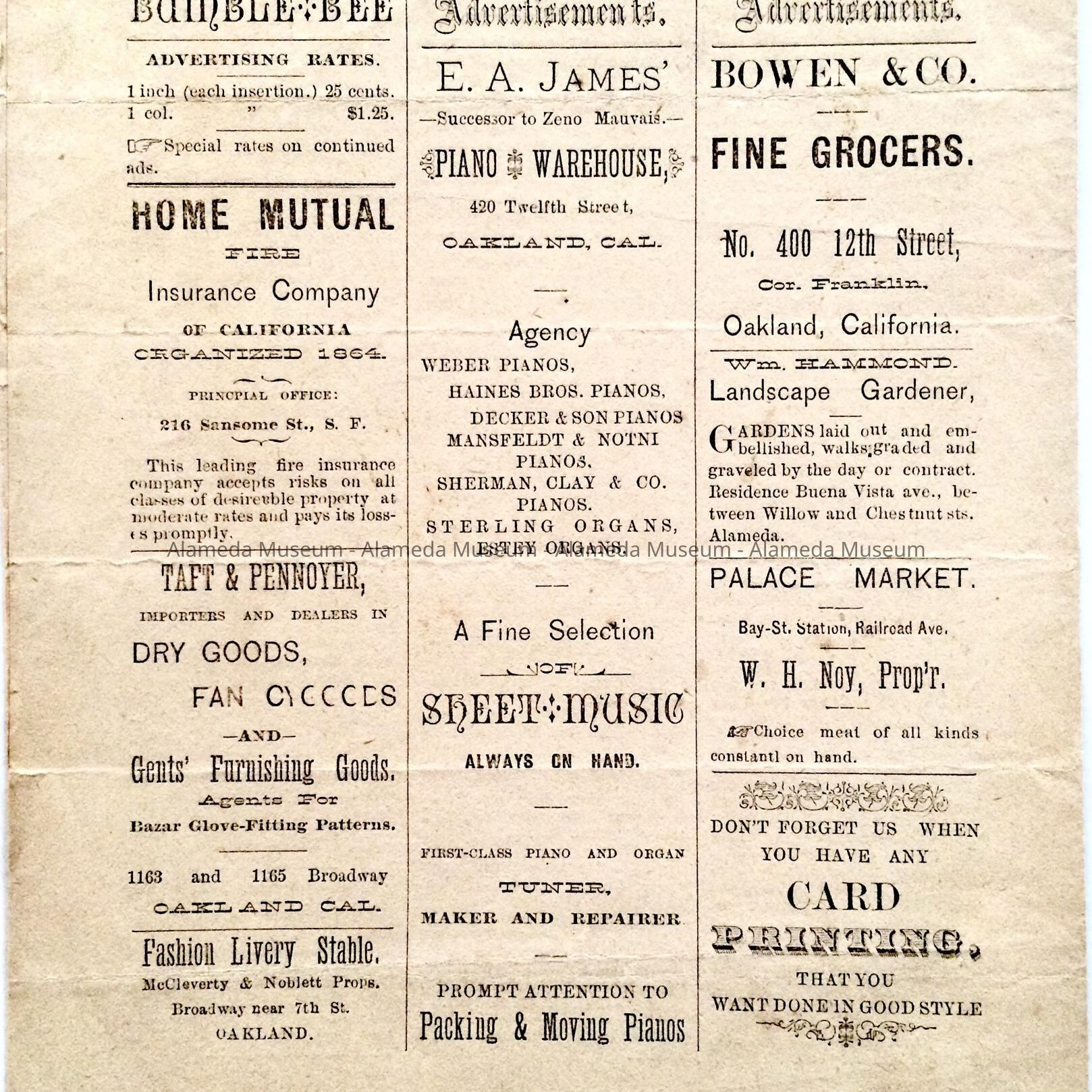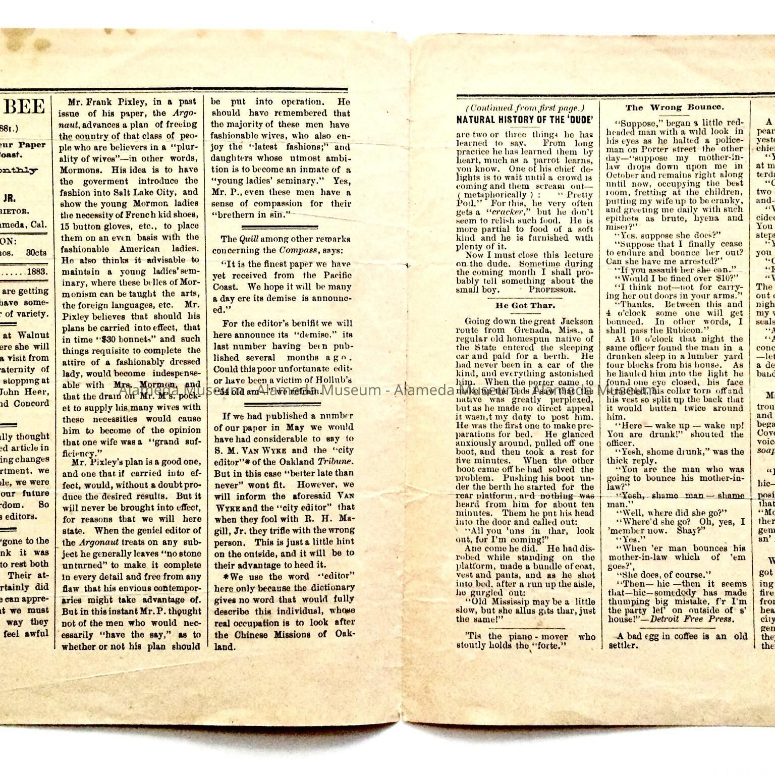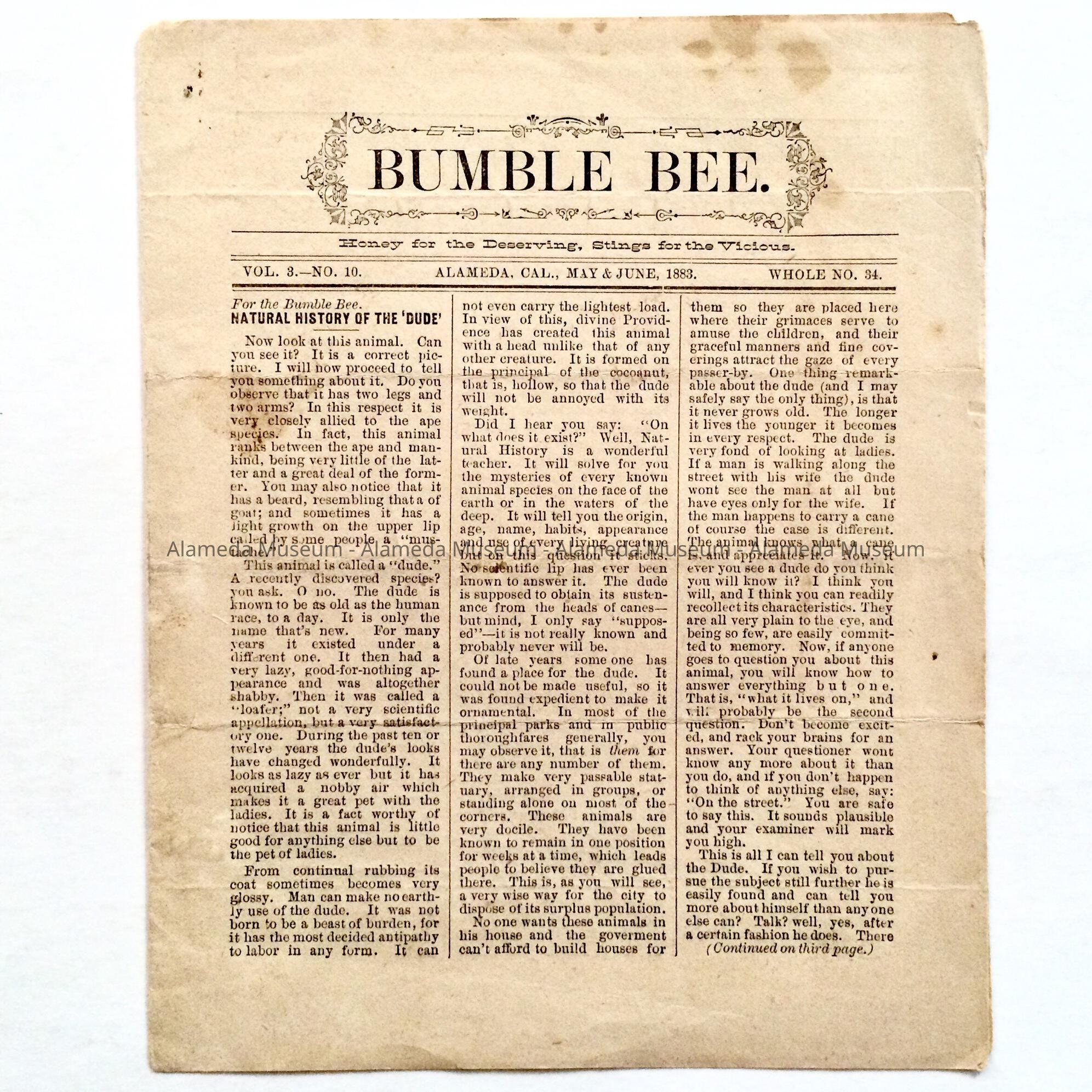 Newspaper 'Bumble Bee', 1883Entry/Object ID