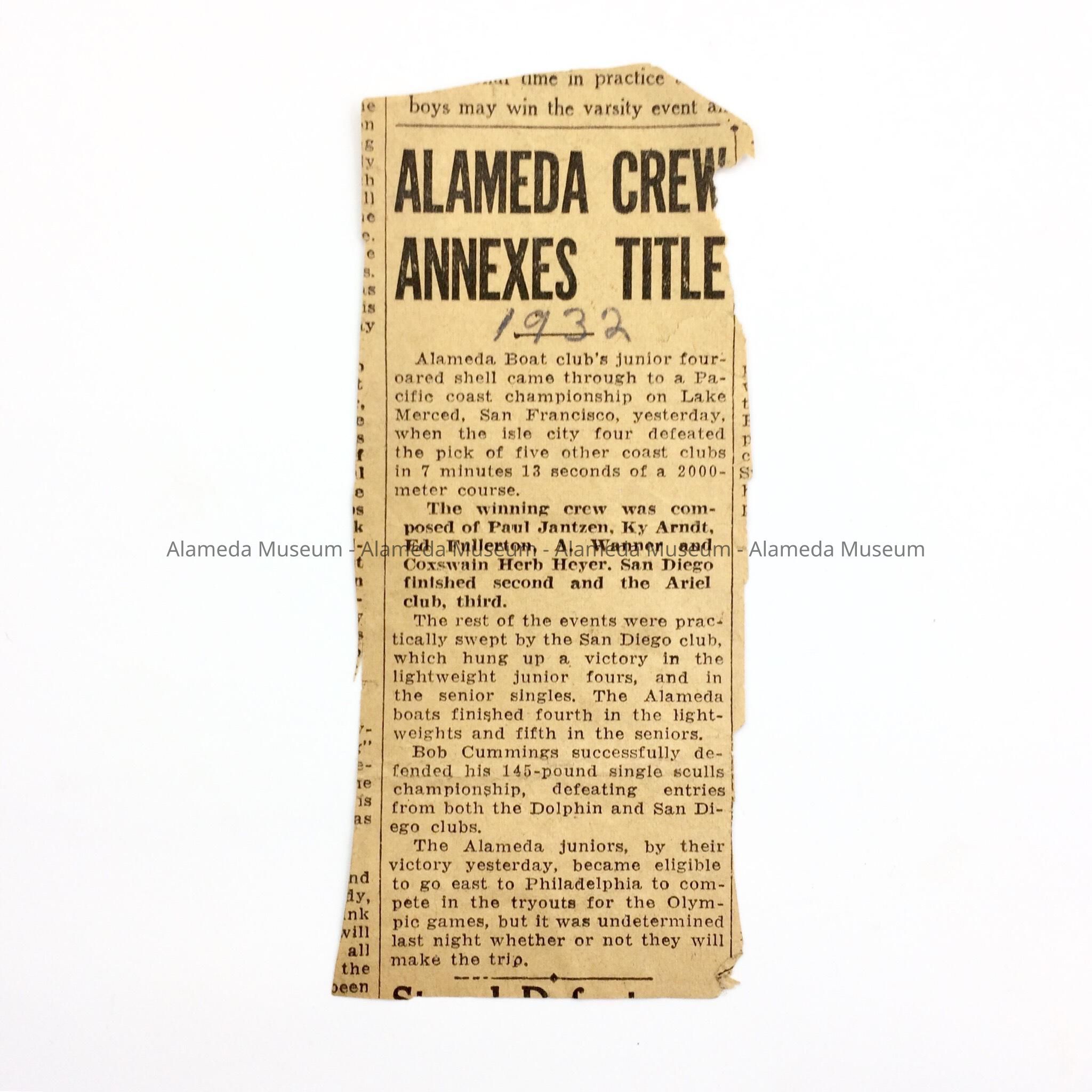 Newspaper Clipping 'Alameda Crew Annexes Title, 1932Entry/Object ID