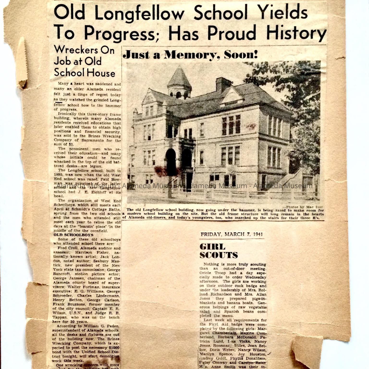 Newspaper Clipping describing demolition Longfellow School, 1940Entry/Object ID