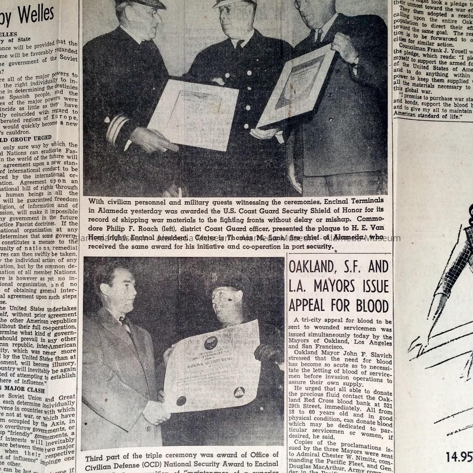 Newspaper Clipping re Coast Guard Security Shield of Honor for Encinal Terminals, c. 1945Entry/Object ID