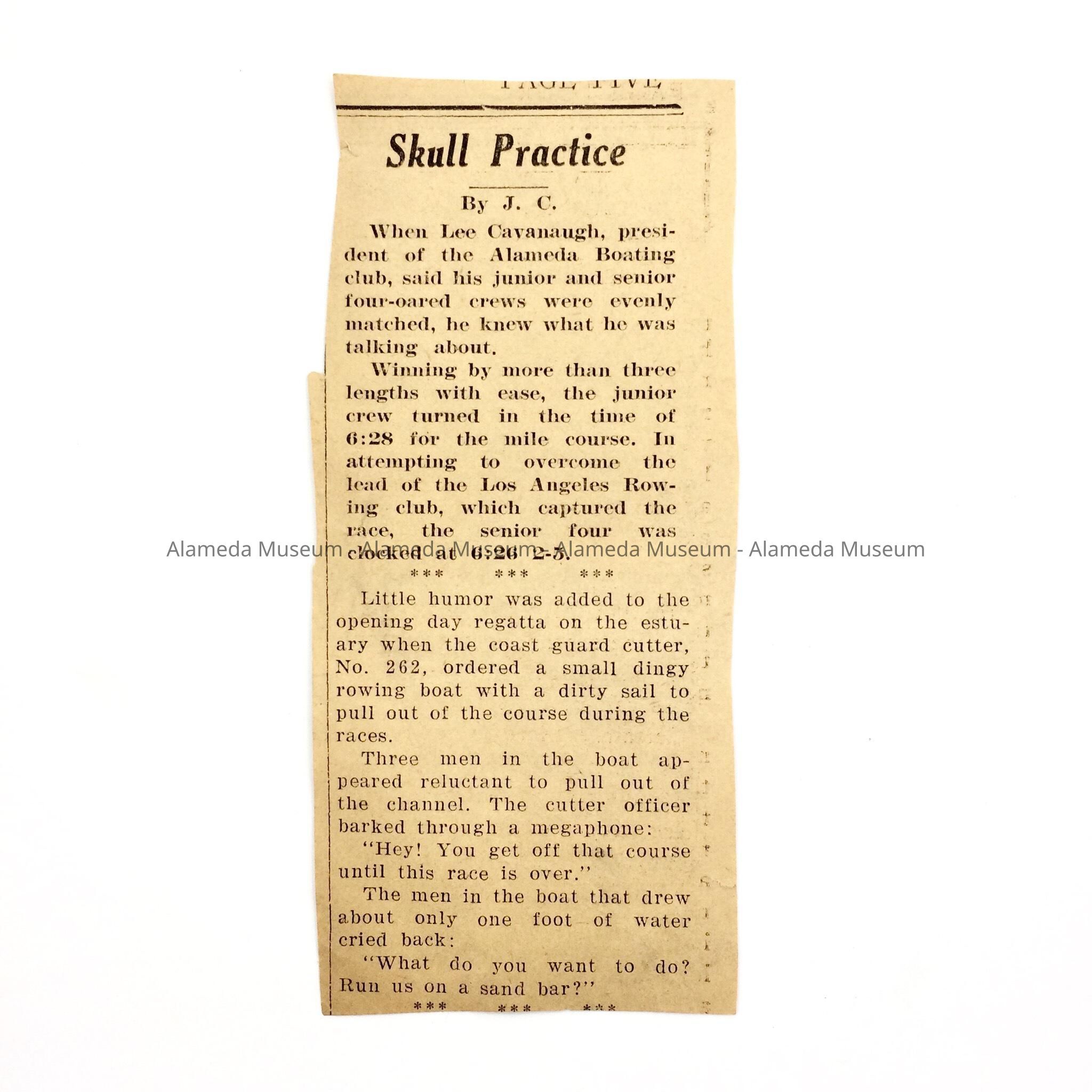 Newspaper Clipping 'Skull Practice', about Lee Cavanaugh, 1930sEntry/Object ID