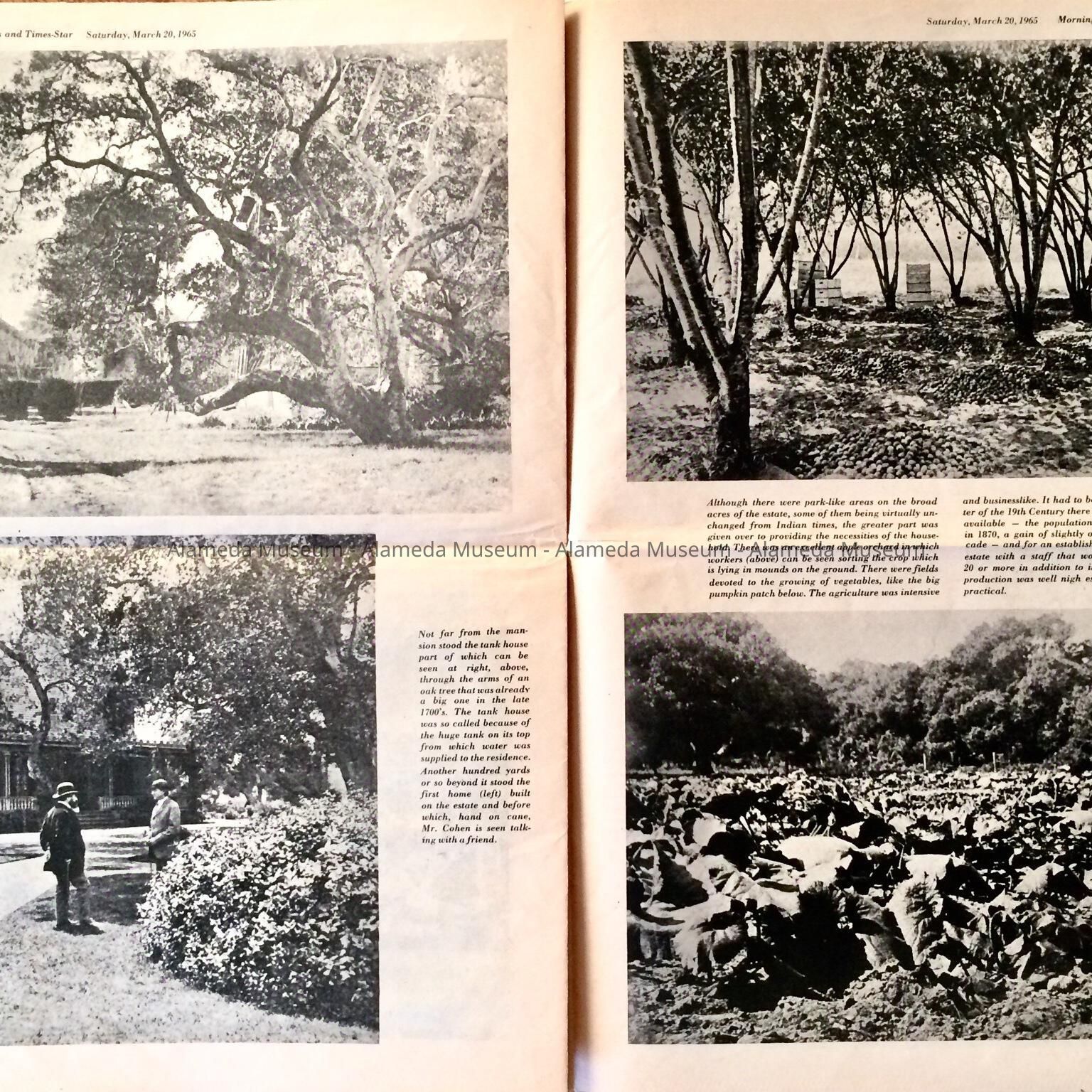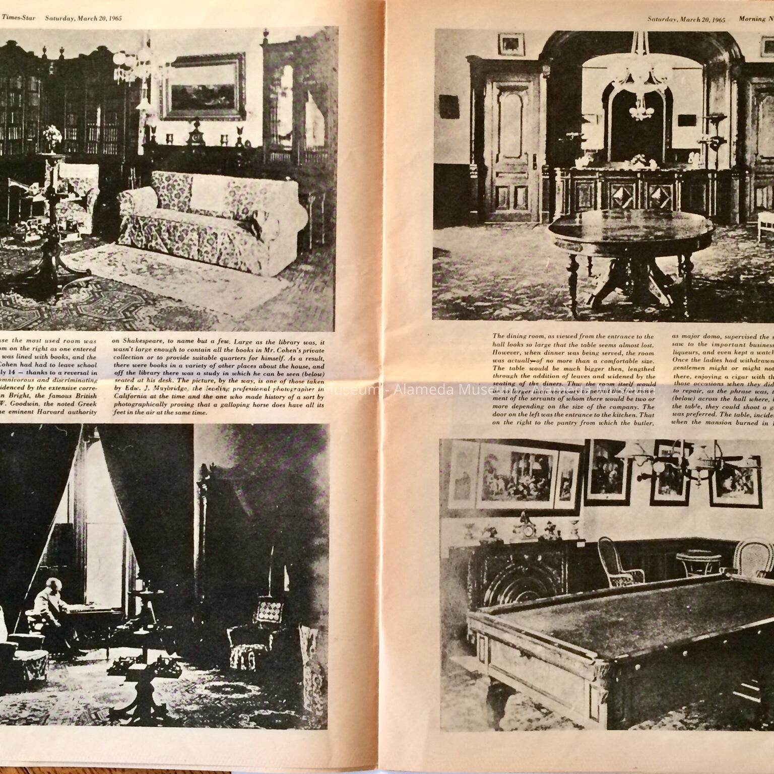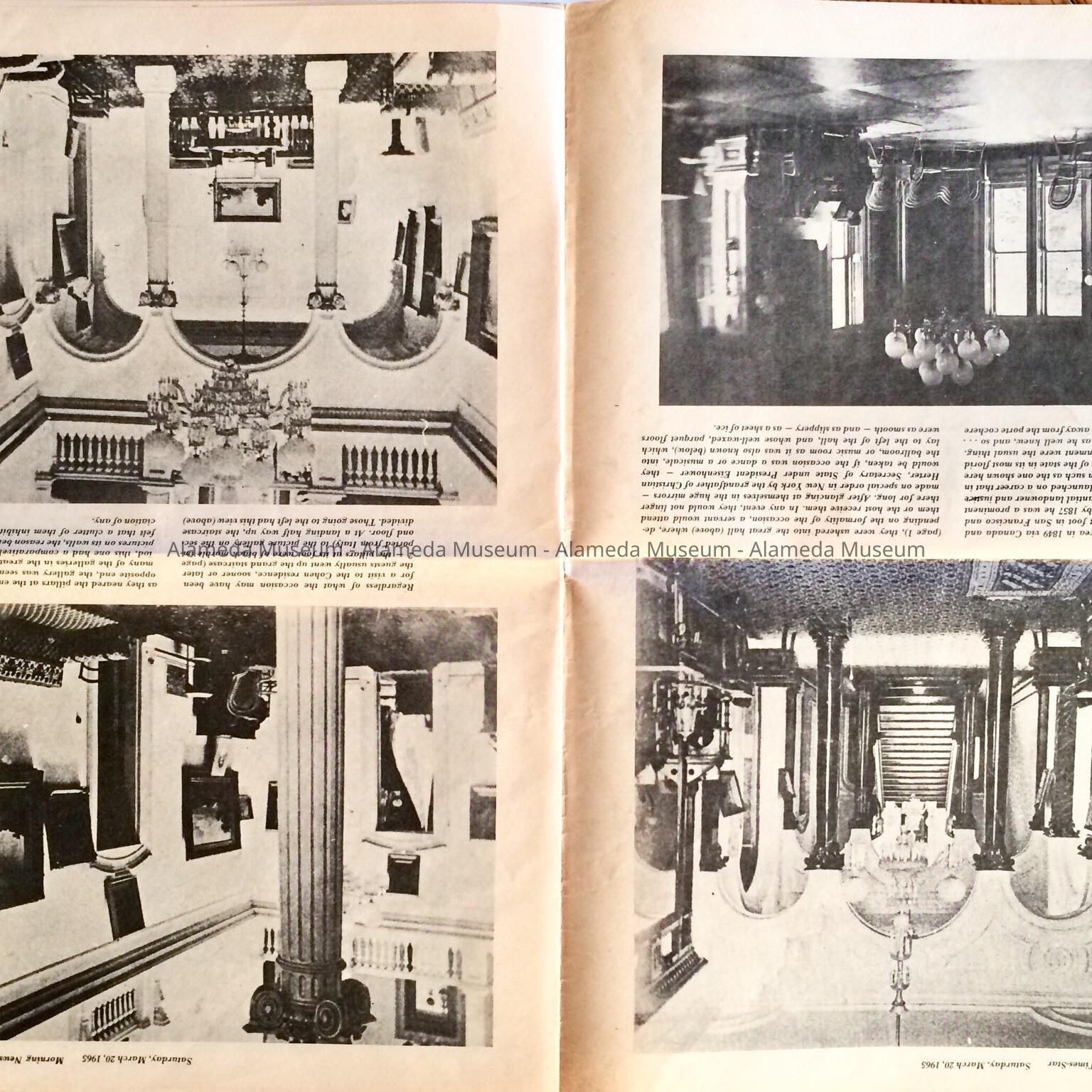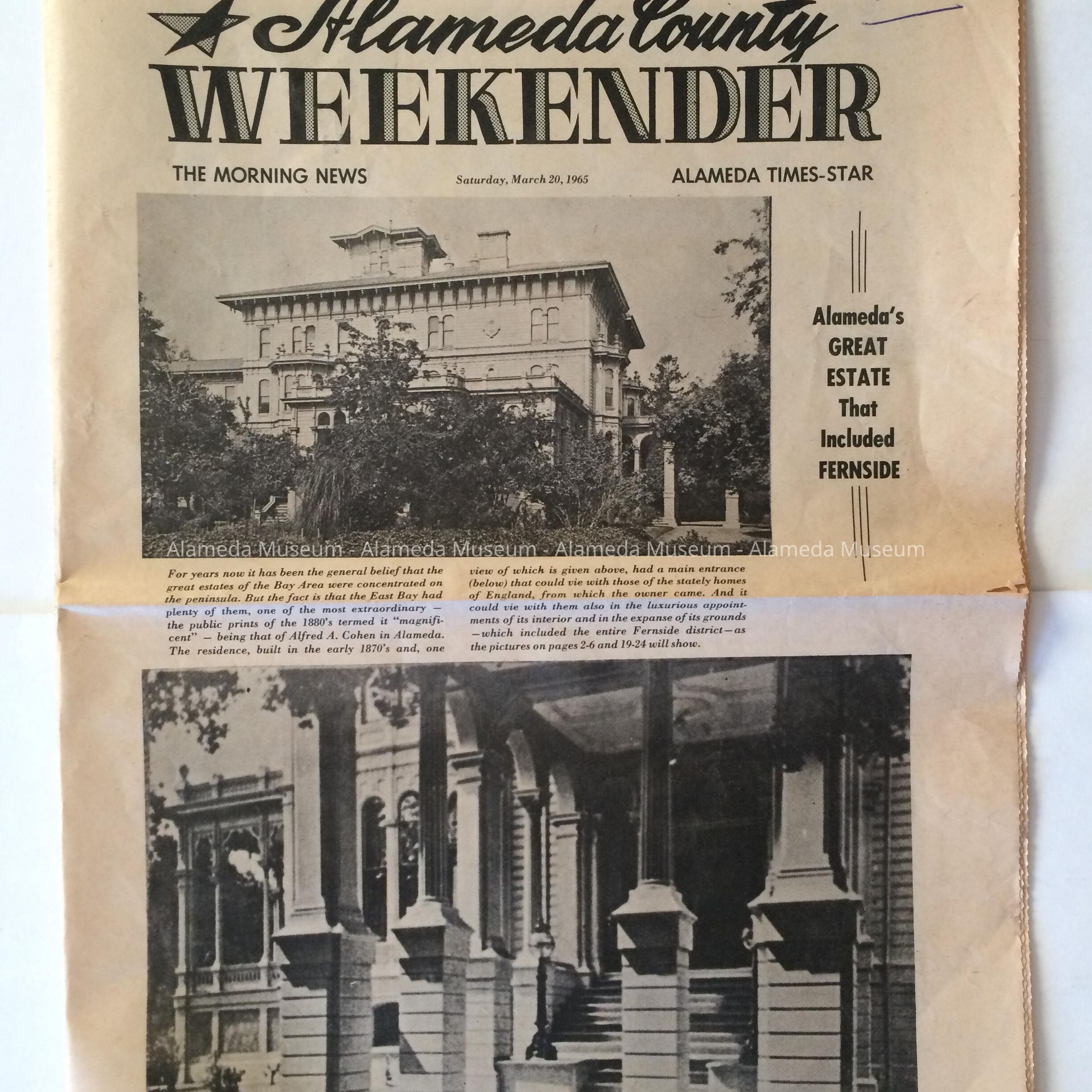 History: Newspaper insert which featured a collection of Interior and Exterior photos of the estate known as Fernside, Alameda. The estate included a 70 room mansion that was destroyed by fire in 1897. The estate belonged to A.A. Cohen, Attorney for the Southern Pacific.