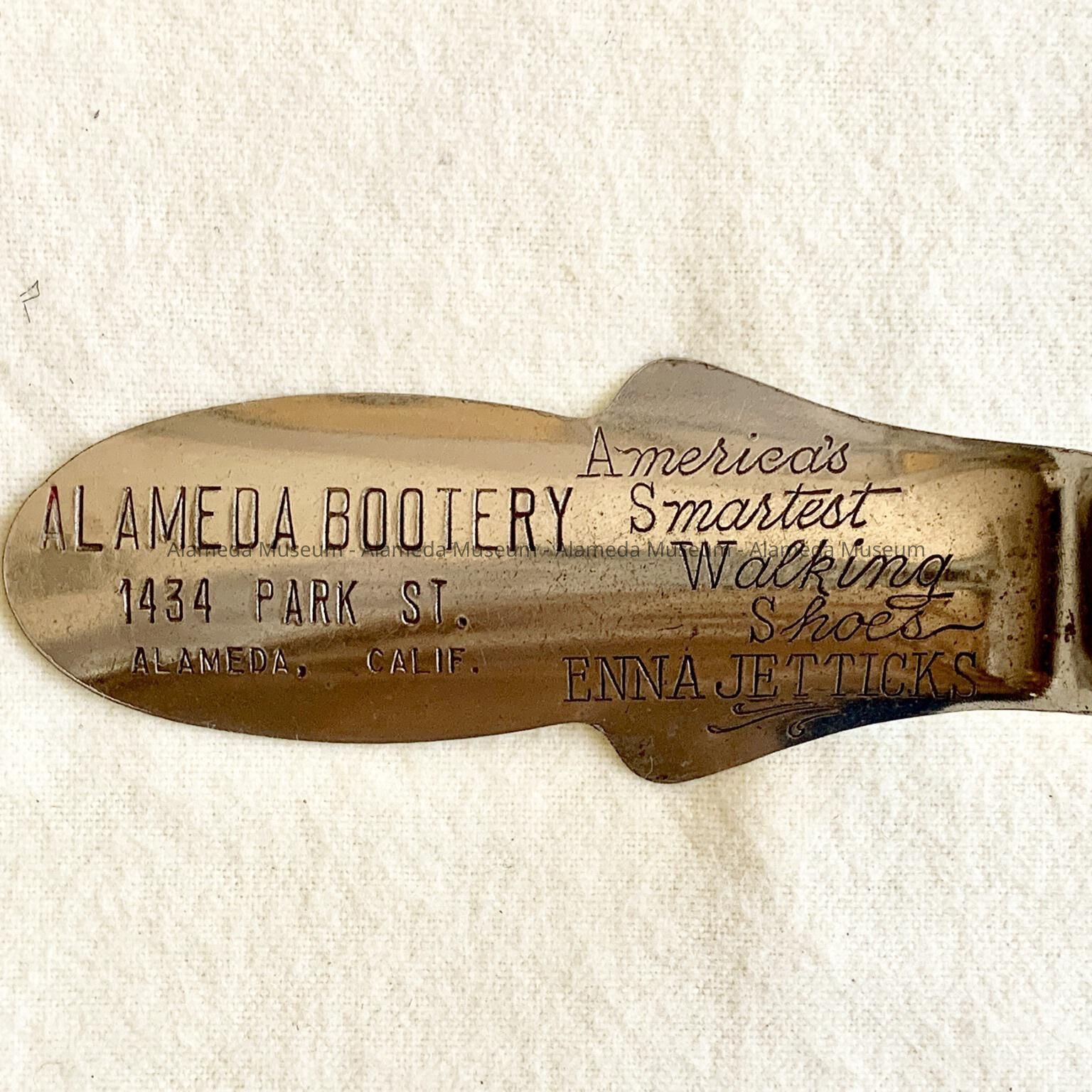 SHOE HORN ADVERTISING THE ALAMEDA BOOTERY @ 1434 PARK STREET, ALAMEDA, CALIFORNIA.