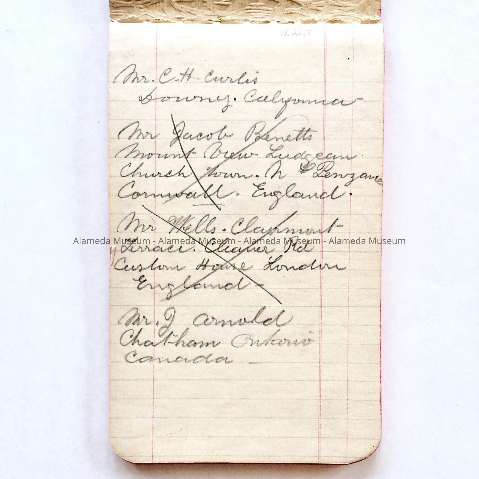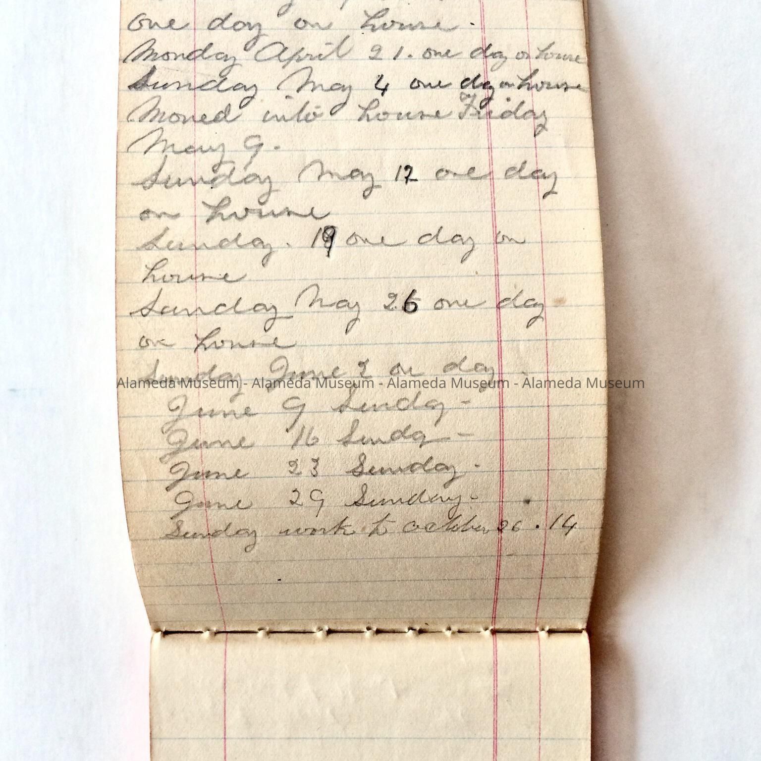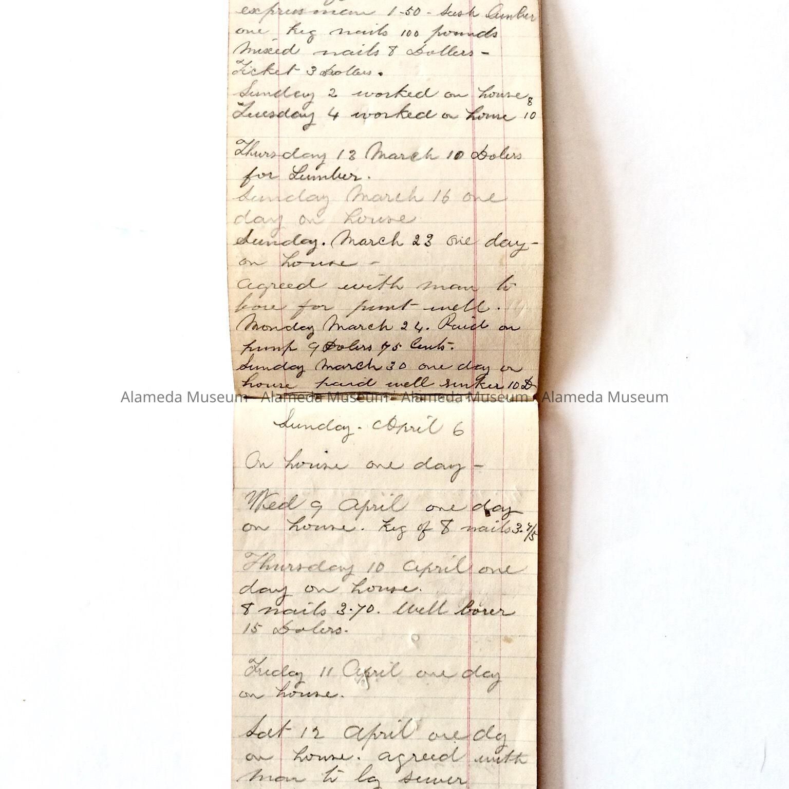 History of Object: Notebook containing building information compiled by Cornelius Marsh Lee in reference to a house built in Alameda during the period October 22, 1889 - May 4, 1890. Mr. Lee was responsible for building homes at 1529 and 1531 Lincoln Avenue in 1893.