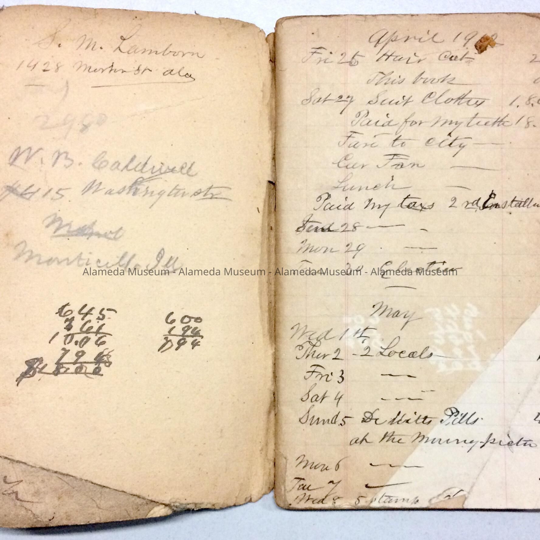 NOTEBOOK USED AS A DAY BOOK BY S M LAMBORN, FATHER OF BENJAMIN F LAMBORN, LONGTIME ALAMEDA CITY CLERK.