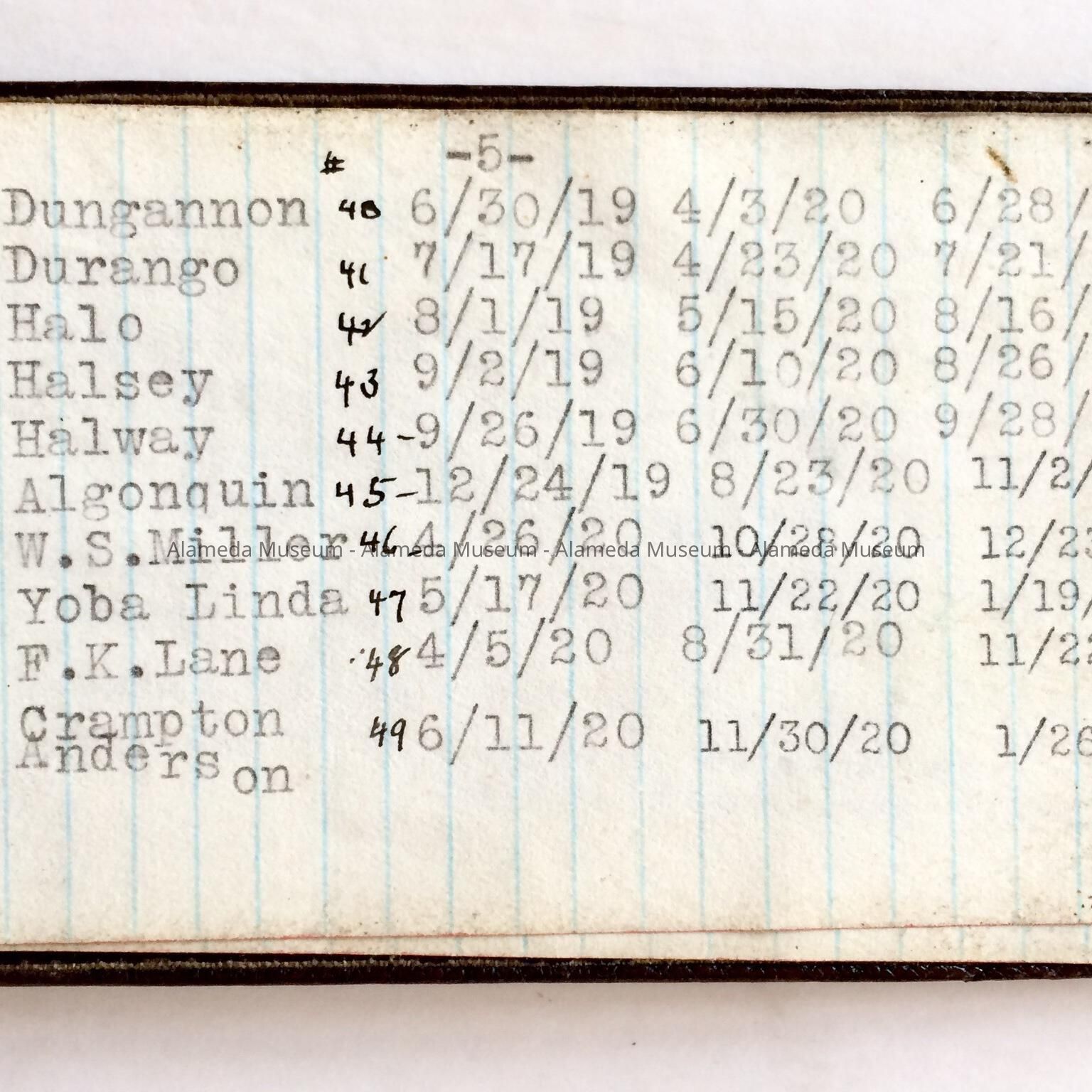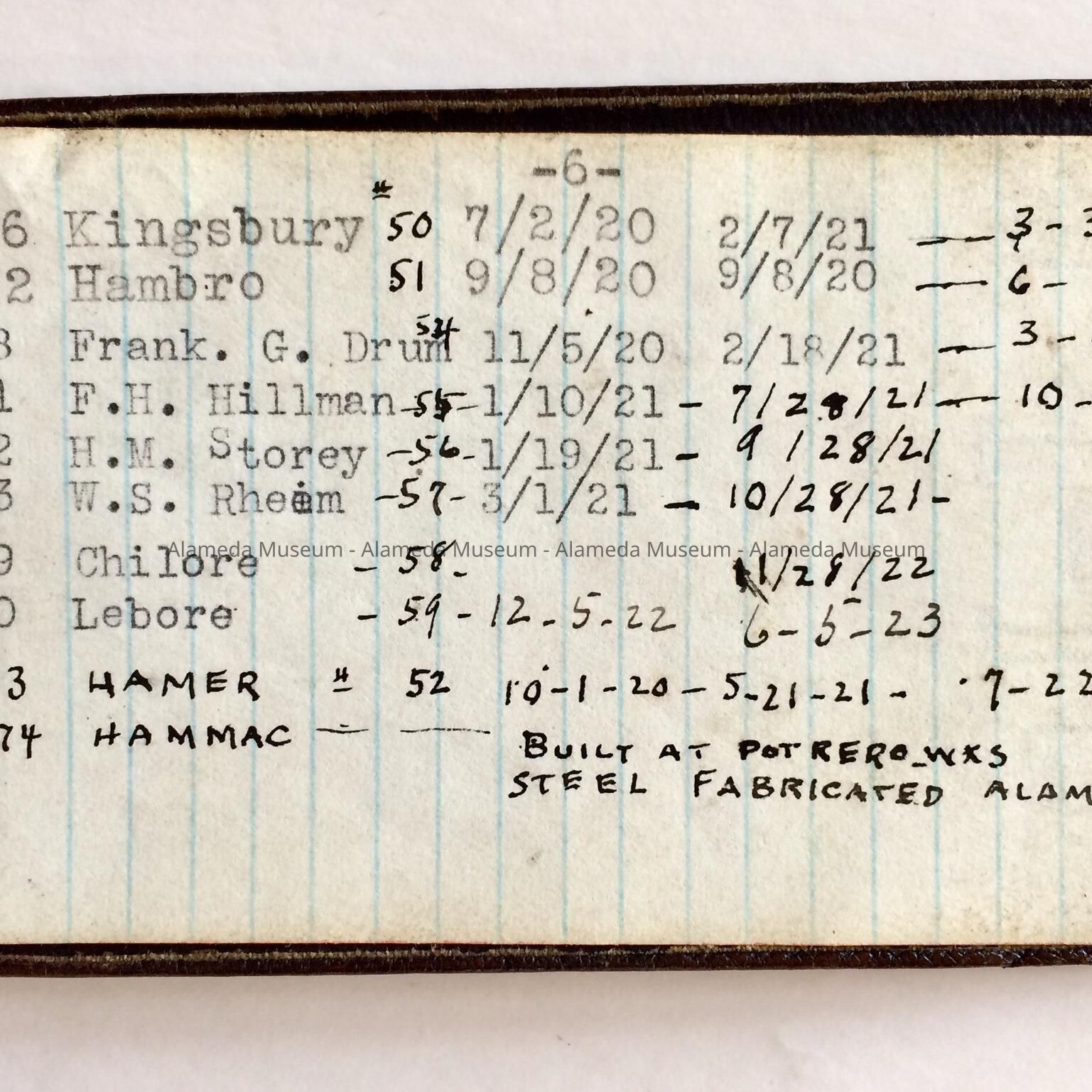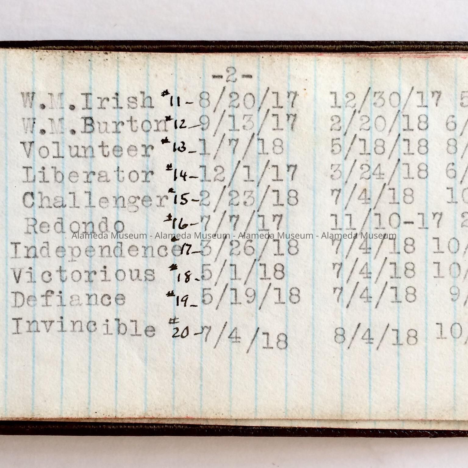 Notebook Vessels constructed by the United Engineering Company, 1916-1940sEntry/Object ID