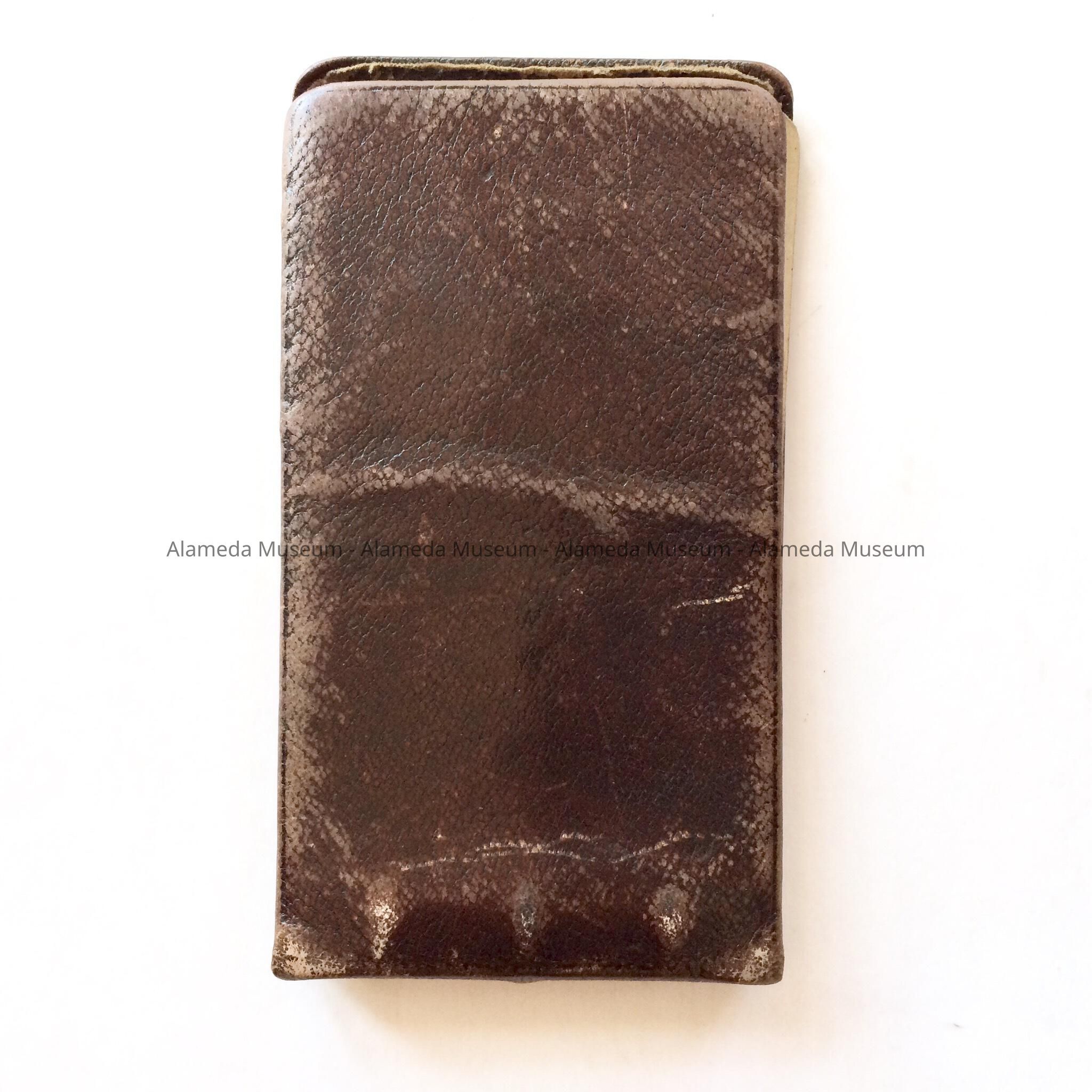 DESCRIPTION: MINATURE BINDER NOTEBOOK, BLACK LEATHER COVER.