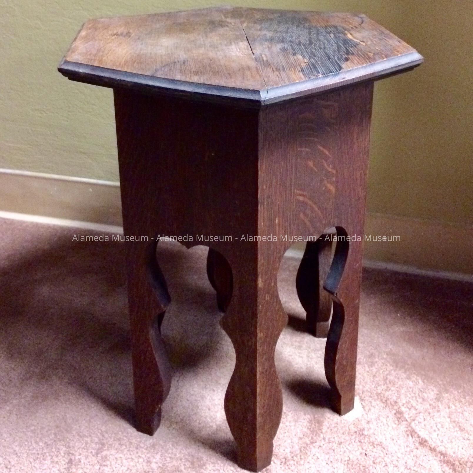 OAK TABORET STYLE TABLE FROM THE STARR FAMILY RESIDENCE, 2033 ENCINAL AVENUE, ALAMEDA, CA.