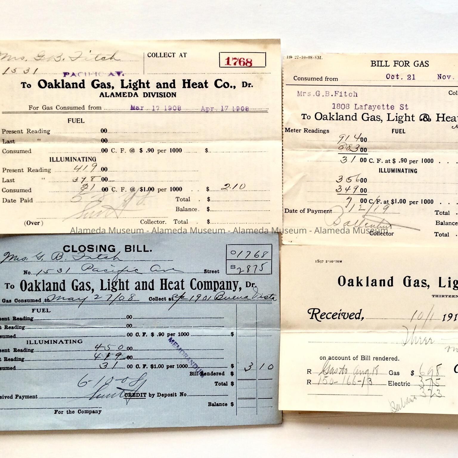 Oakland Gas, Light & Heat Co. Bills for gas for the Fitch Family, 1908-1911Entry/Object ID