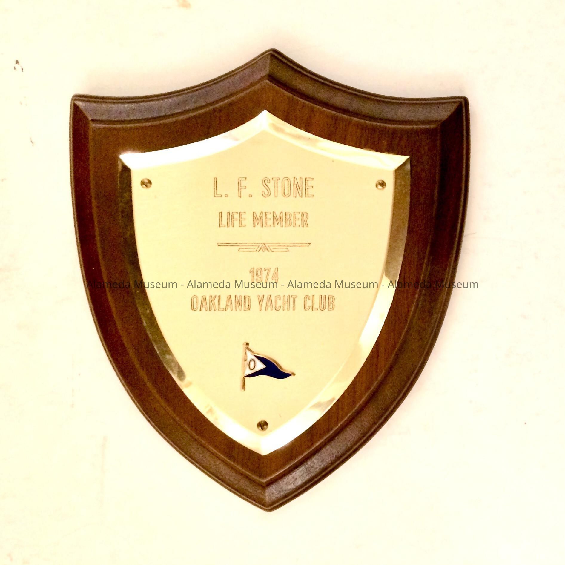 Oakland Yacht Club Life membership plaque of Lester Stone, 1974Entry/Object ID