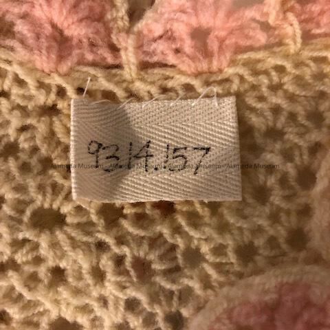 Off-white crocheted wool baby jacket with pink crocheted edging, c. 1920sEntry/Object ID
