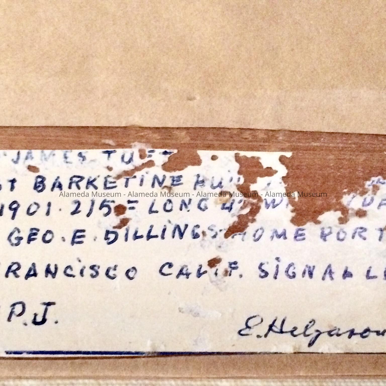 WASH, 1901. 215 F LONG 42 F WIDE [text eroded] DEEP 1901 - OWNER GEO. E. DILLINGS. HOME PORT SAN FRANCISCO CALIF. SIGNAL LETTERS K.Q.P.J.