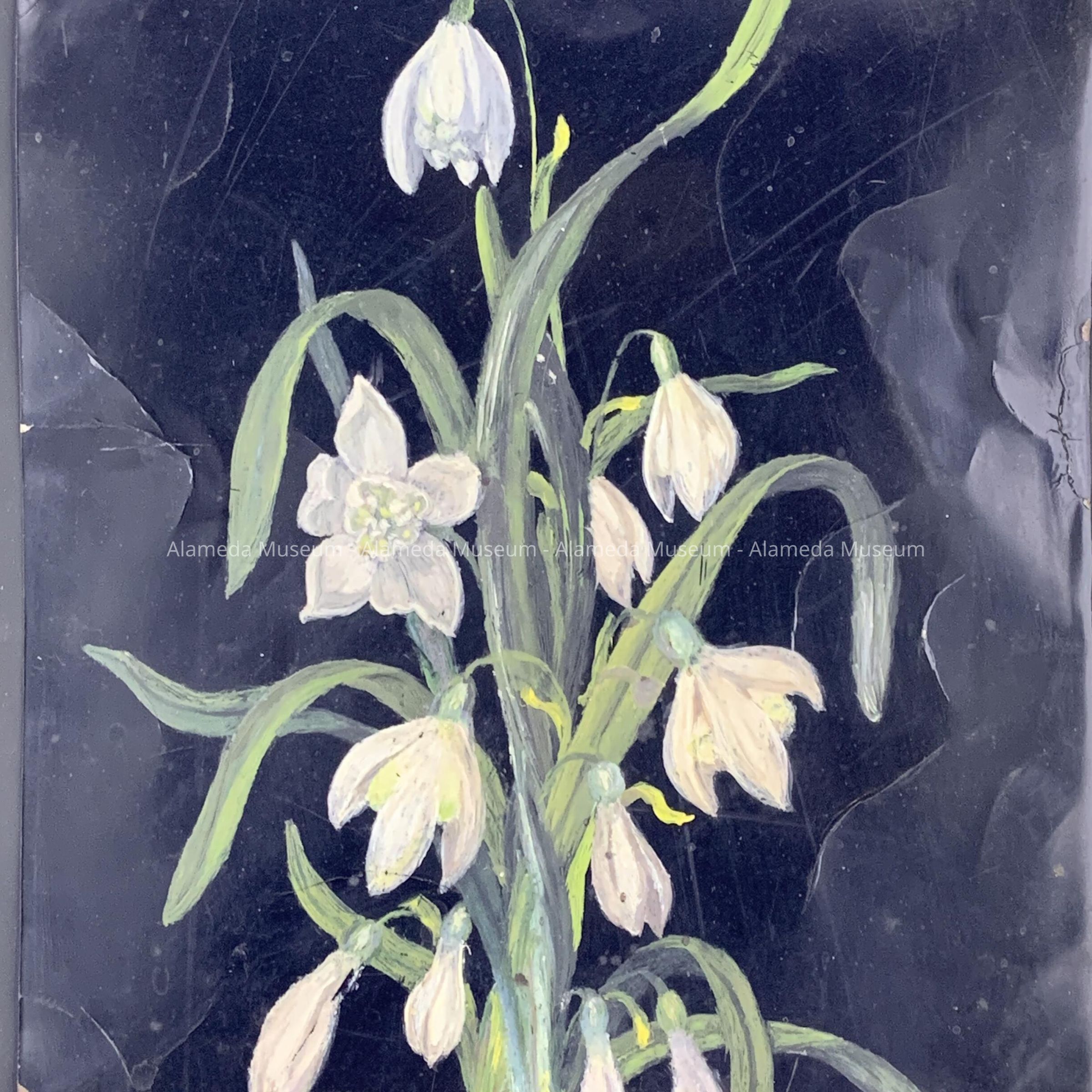 Oil painting of white flowers on tin by Alice M. Chipman, c. 1890sEntry/Object ID