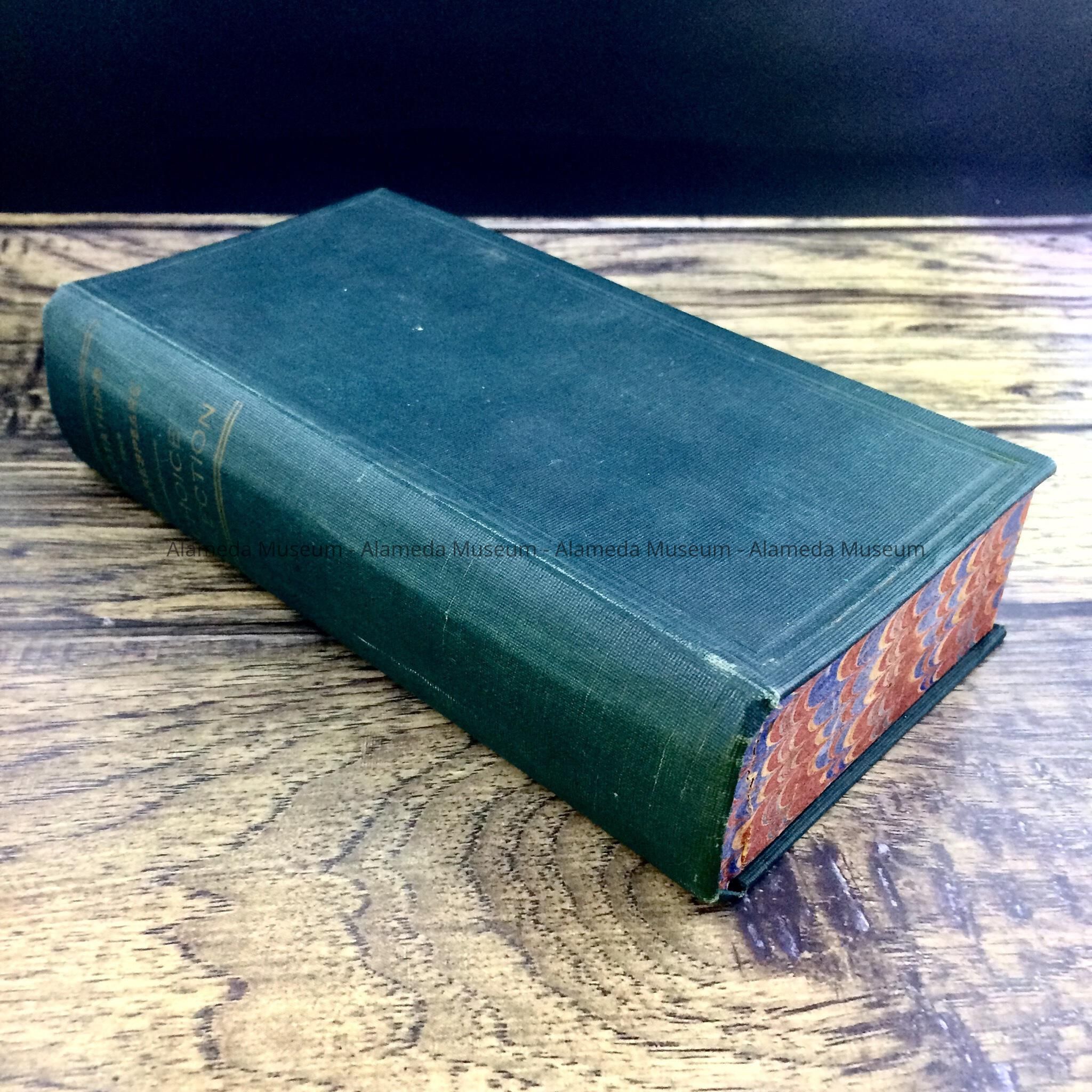 NOVELTY FLASK HOUSED IN A BOOK-TYPE COVER THAT BELONGED TO THE DYER'S, LONG-TIME RESIDENTS OF THE CITY OF ALAMEDA, CA.