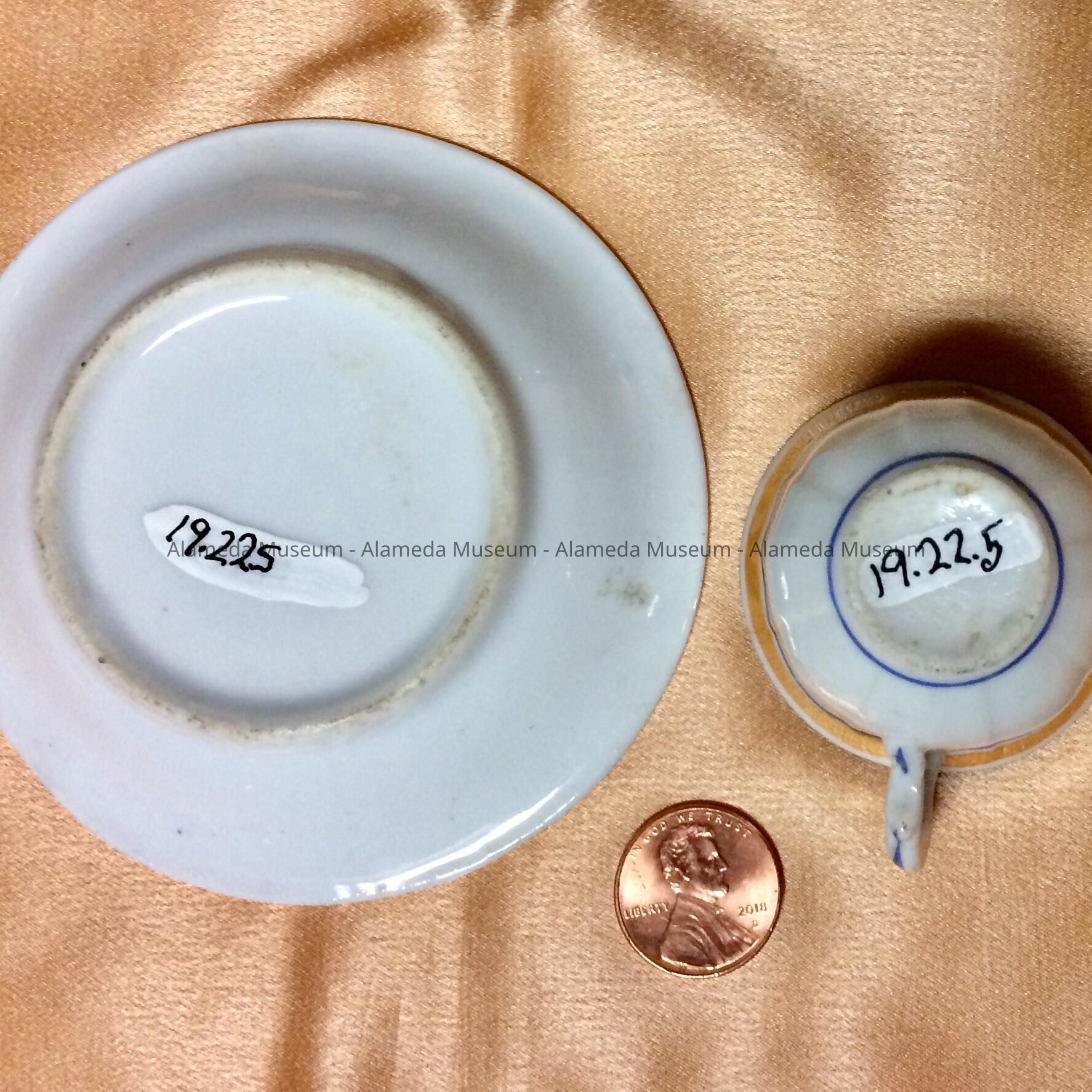 Sizes: saucer: diam. 3.5 in.; cup: H-1.5 inches.