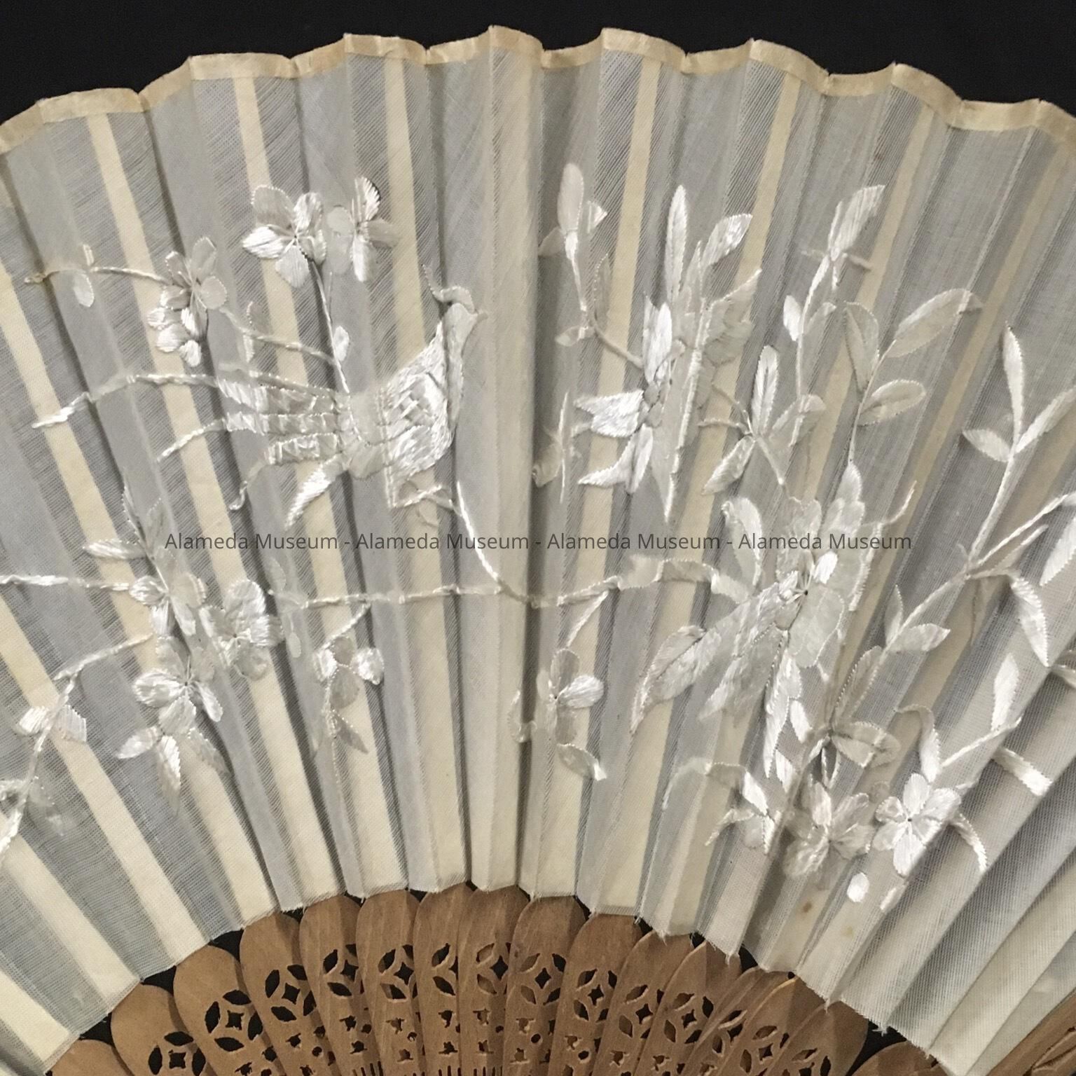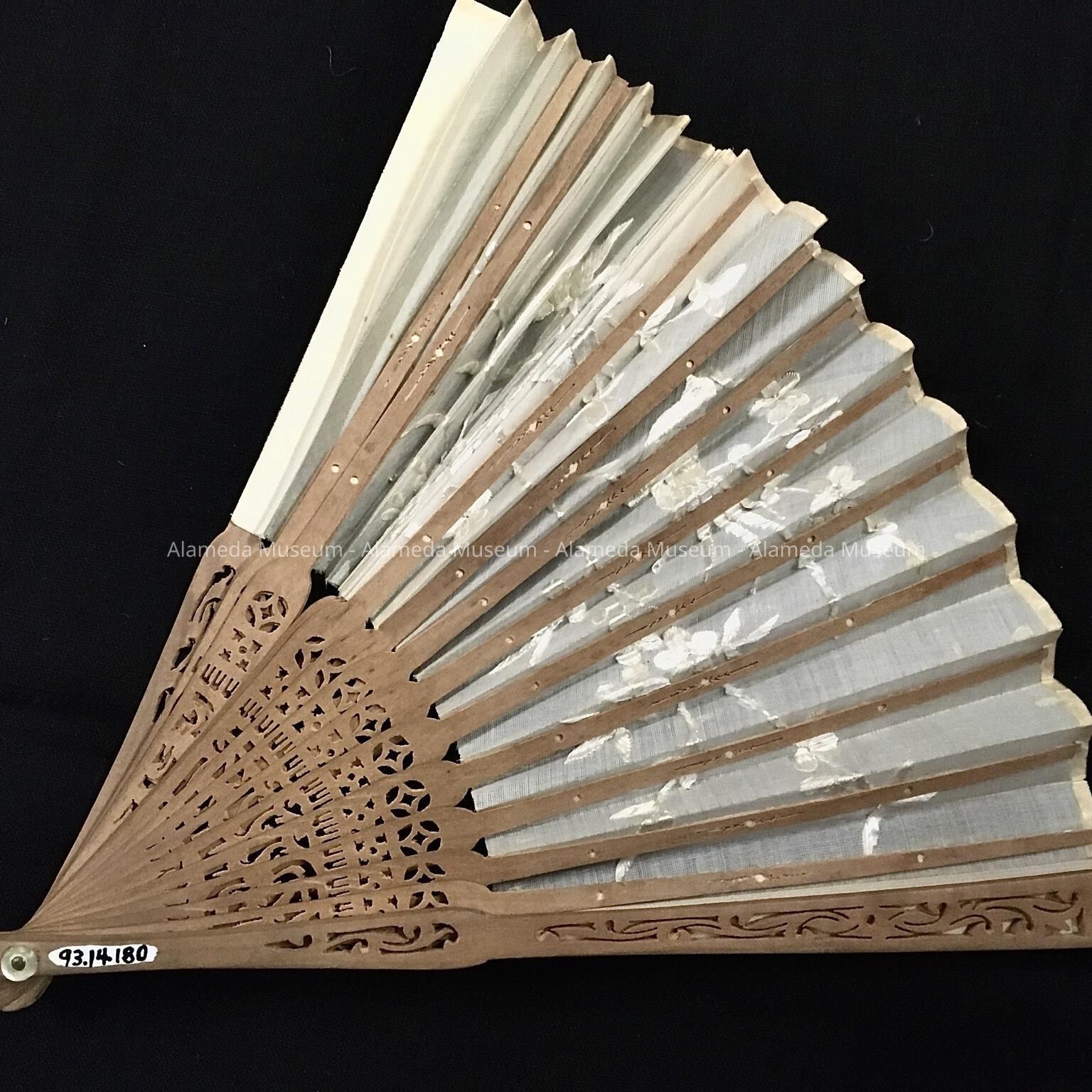 Oriental white raw silk embroidered fan used in Manila by A. T. Cox, c. 1917Entry/Object ID