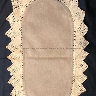 Table doily belonging to Mr. & Mrs. Wm. Cox of Santa Clara Ave. during their early marriage years.