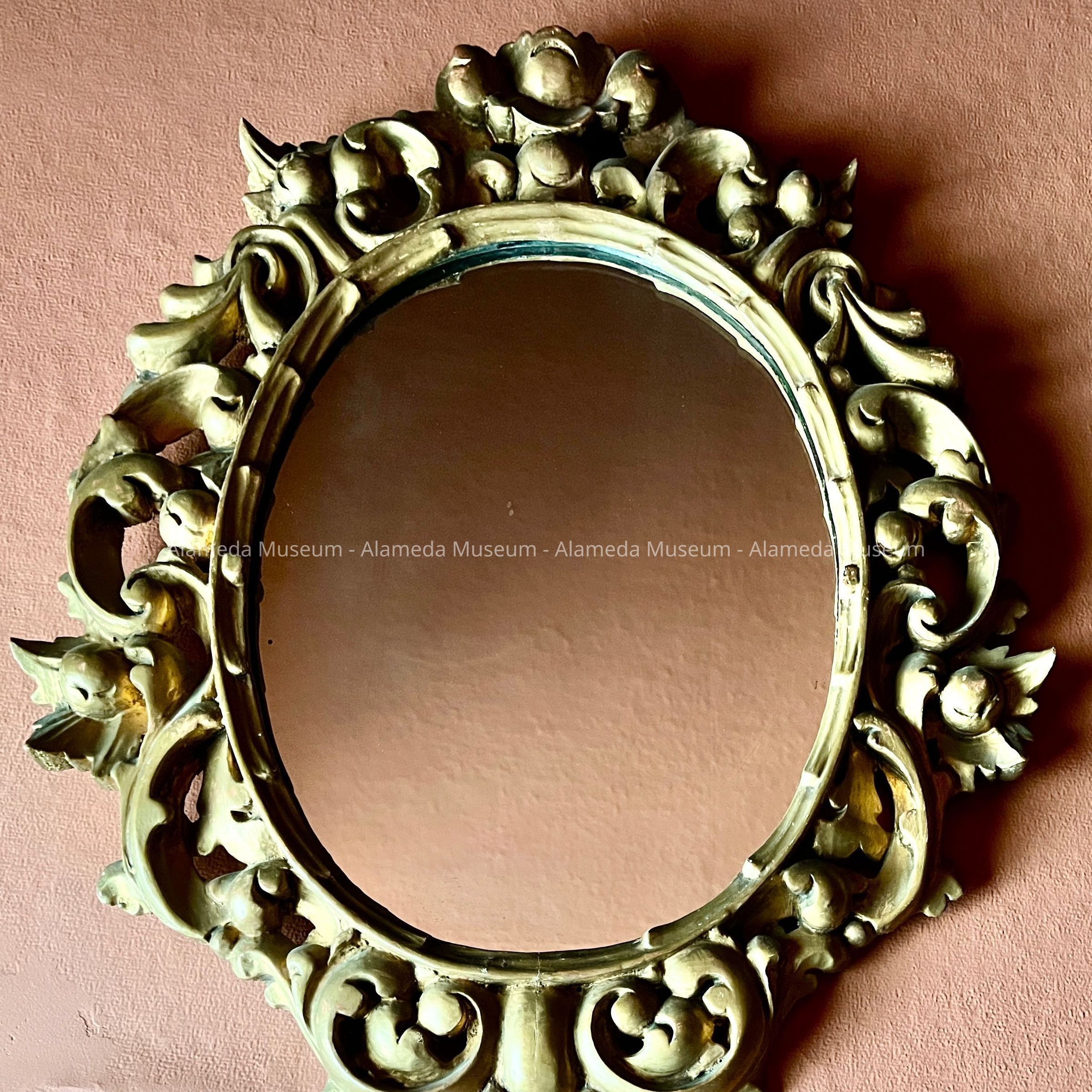 Oval mirror in gold finish rococo carved wood frame, c. 1950sEntry/Object ID