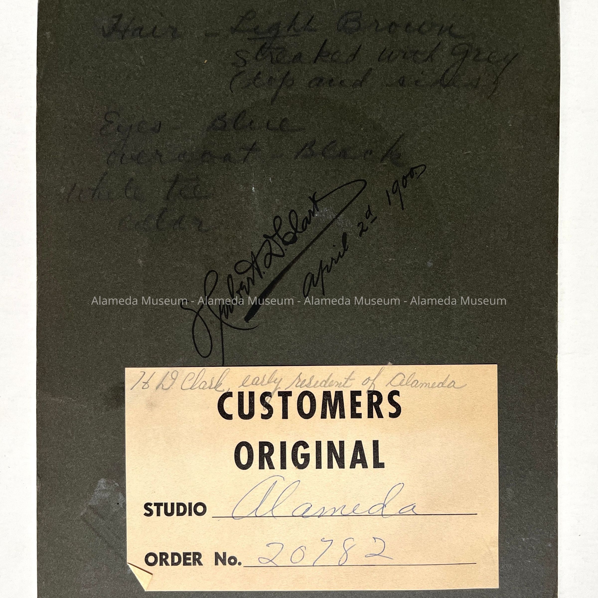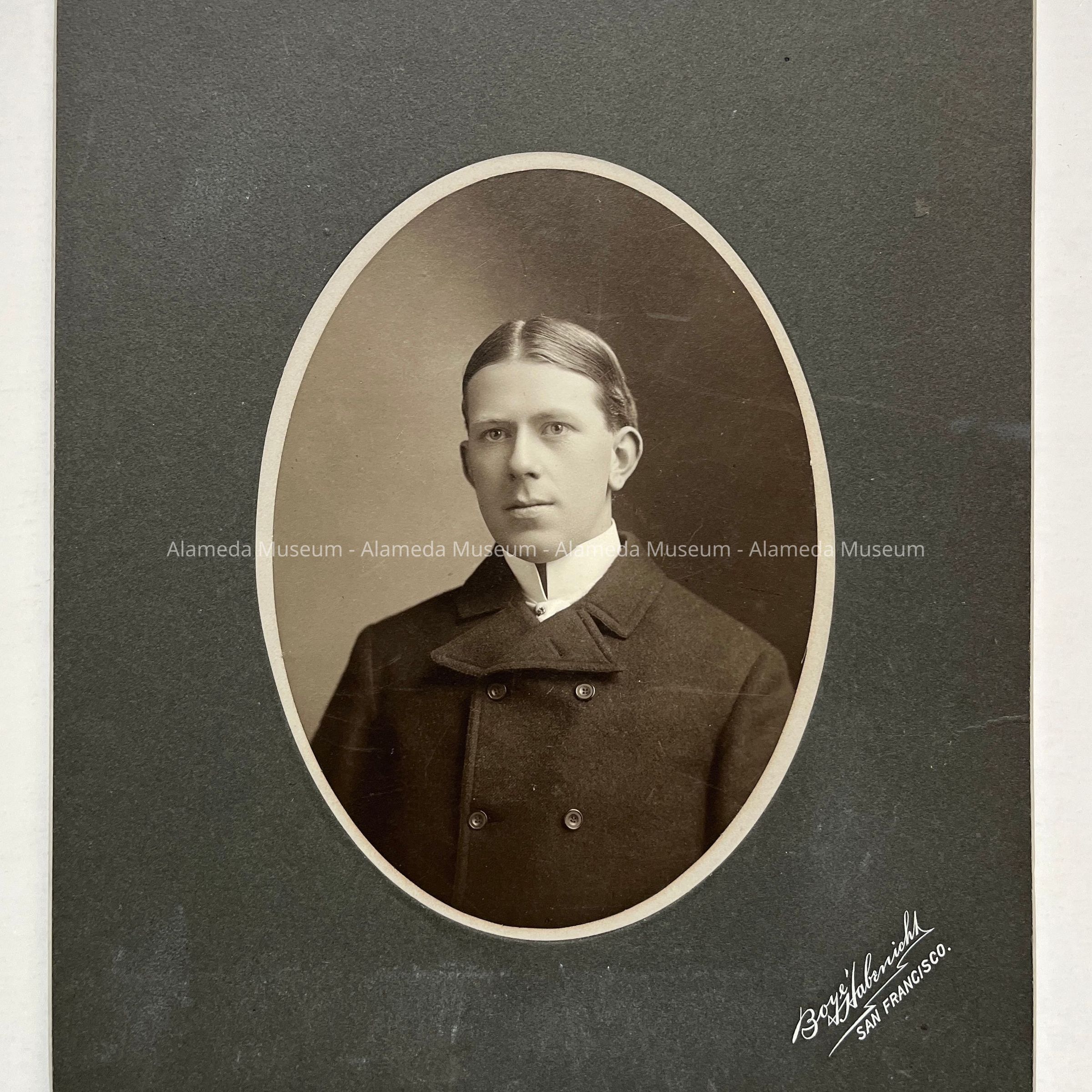 History of Object: Photograph of Herbert D. Clark taken April 2, 1900, a few months before his marriage to Emma Adell Mitchell. He was the son of R. Frank Clark and Ellen Deans Clark. Herbert Clark was born in San Francisco and moved to Alameda in 1878.