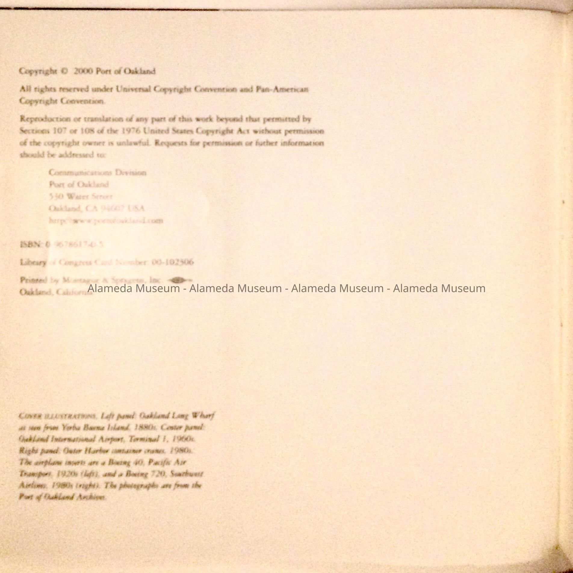 History of Object: Book about the Port of Oakland, covering the history from before the founding in 1925 to the 75th year of existence in 2000. Especially the early history includes mention of Alameda in many photographs and the narrative.