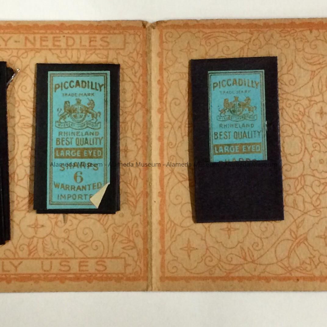 HISTORY OF OBJECT: PACKET CONTAINING SEWING NEEDLES THAT BELONGED TO THE LATE ADELINE TOY COX, WIFE OF WILLIAM COX. HE WAS A MEMBER OF AN ALAMEDA PIONEER FAMILY.