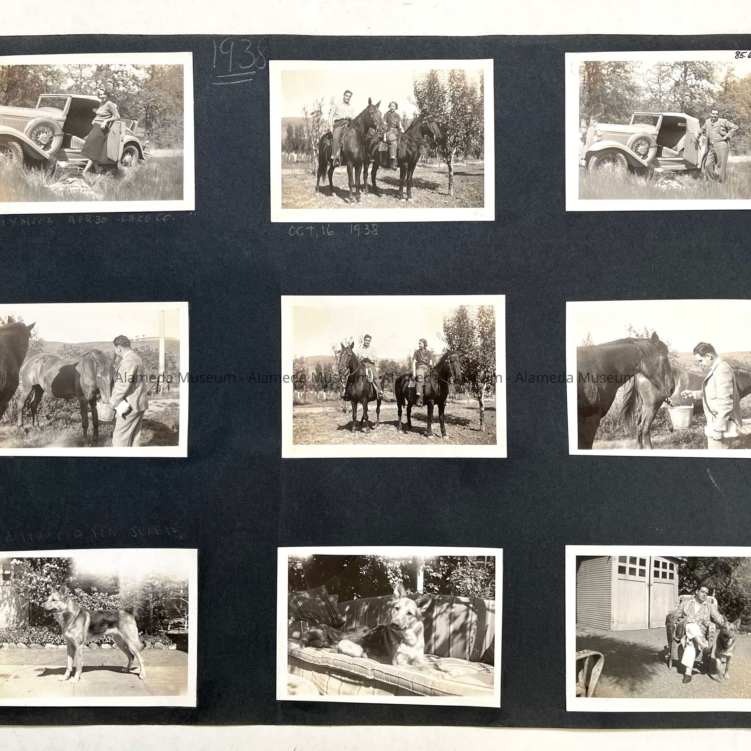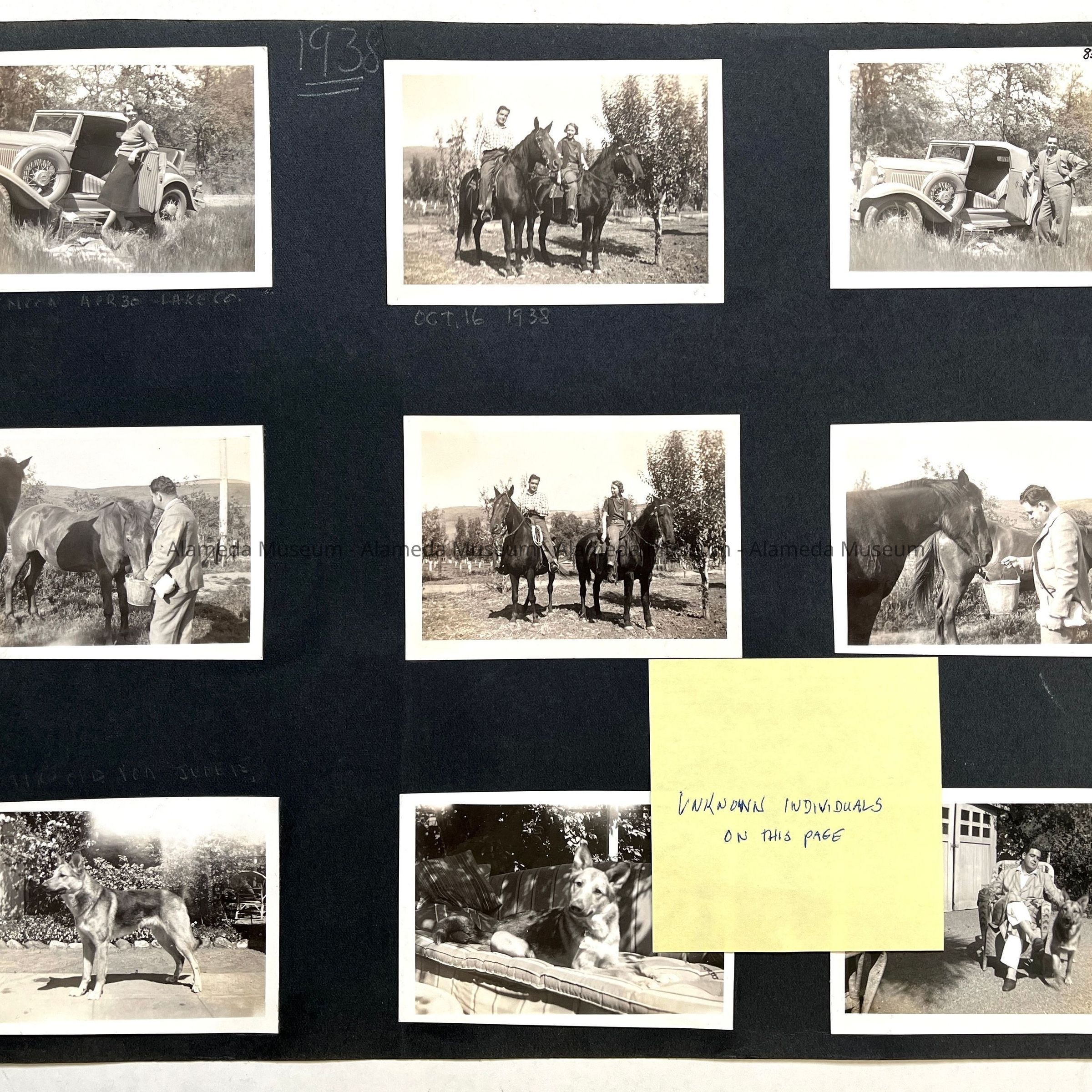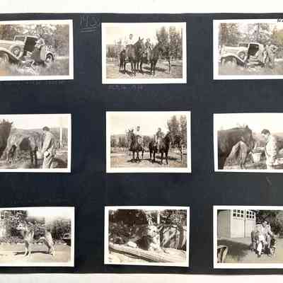 Description: 4 black & white photos attached to a photo album page (black colored paper). Size: L-10 3/4 x W-14 1/4 inches.