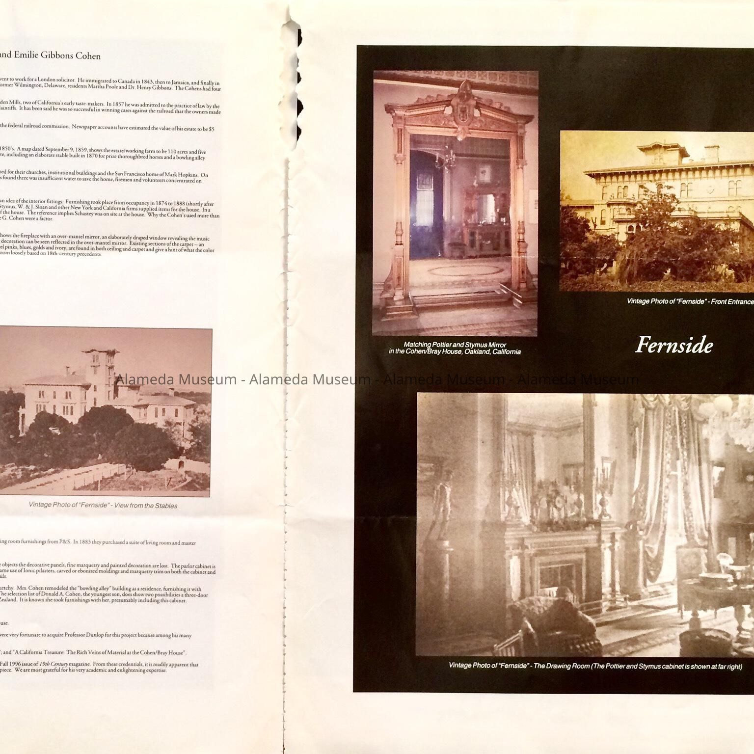 PAGES FROM AN AUCTION BROCHURE CONCERNING THE SALE OF A CABINET ORIGINALLY OWNED BY A A COHEN AS PART OF HIS FURNISHINGS FROM THE MANSION KNOWN AS FERNSIDE, ALAMEDA.