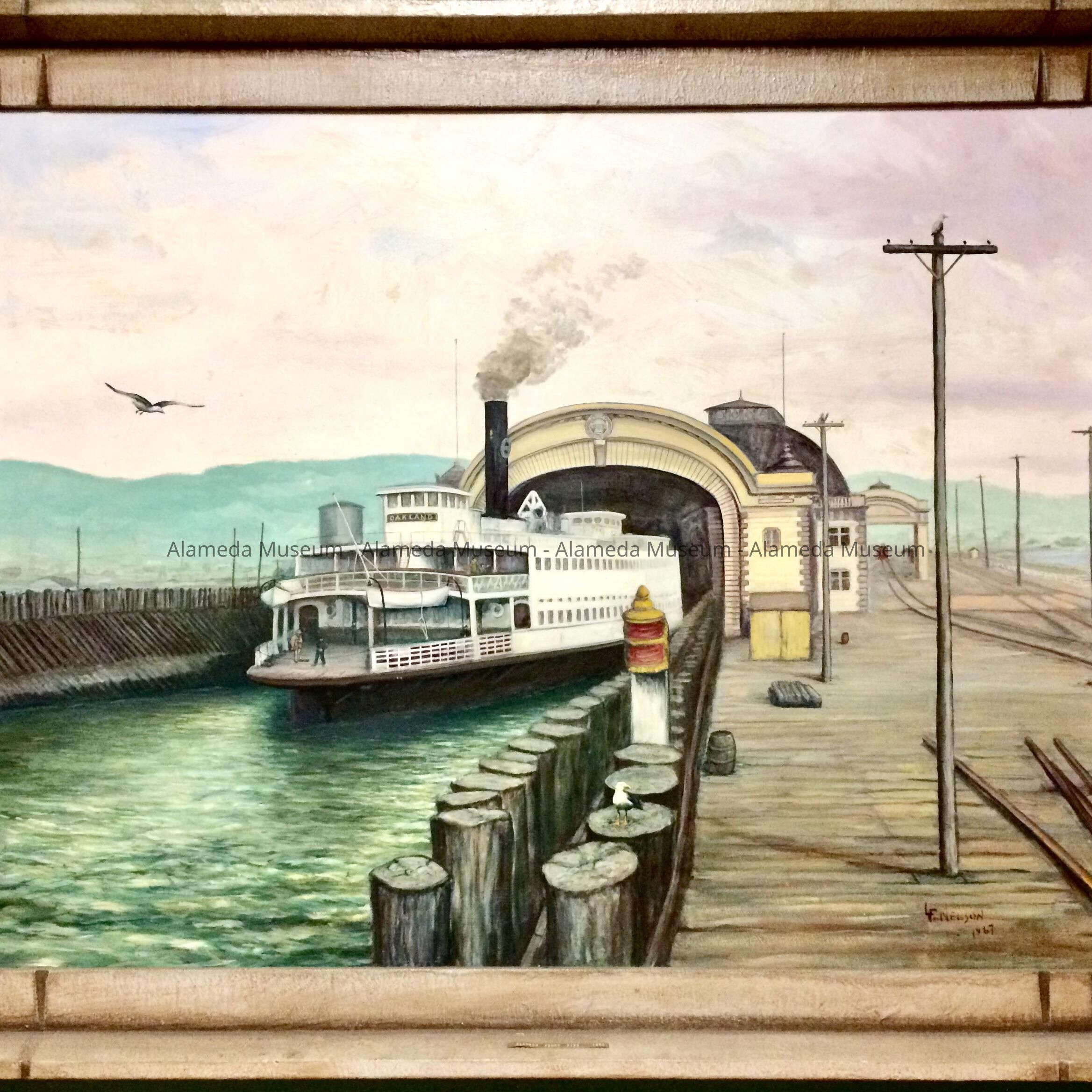 Painting of ferry 'Oakland' at the Alameda Pier, by L.F. Nelson, 1967Entry/Object ID