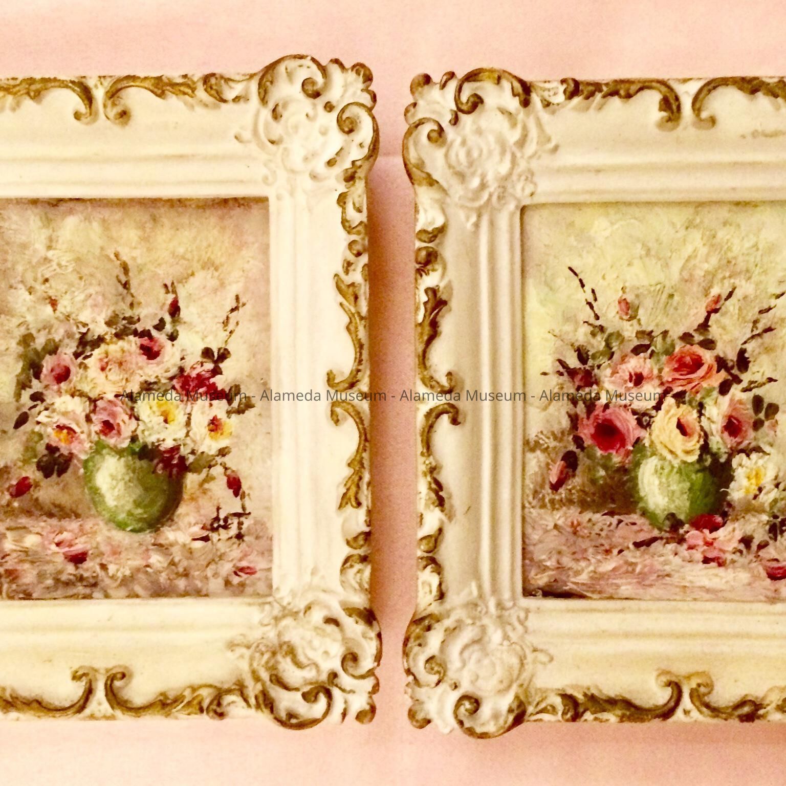 Pair of still life paintings of vases and roses, by Bette De Treville, c. 1950sEntry/Object ID