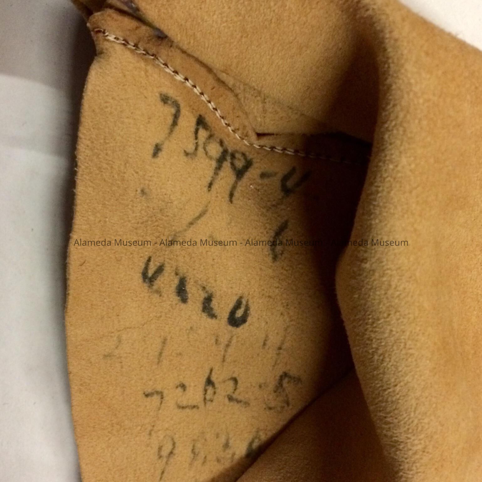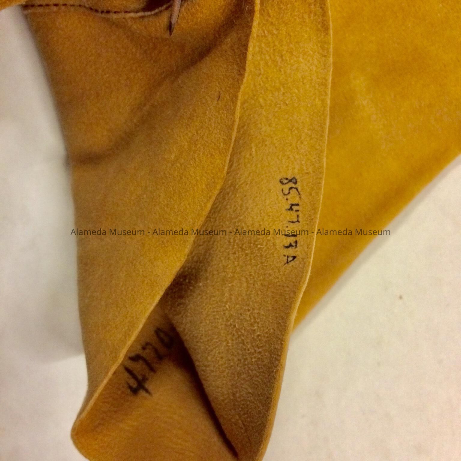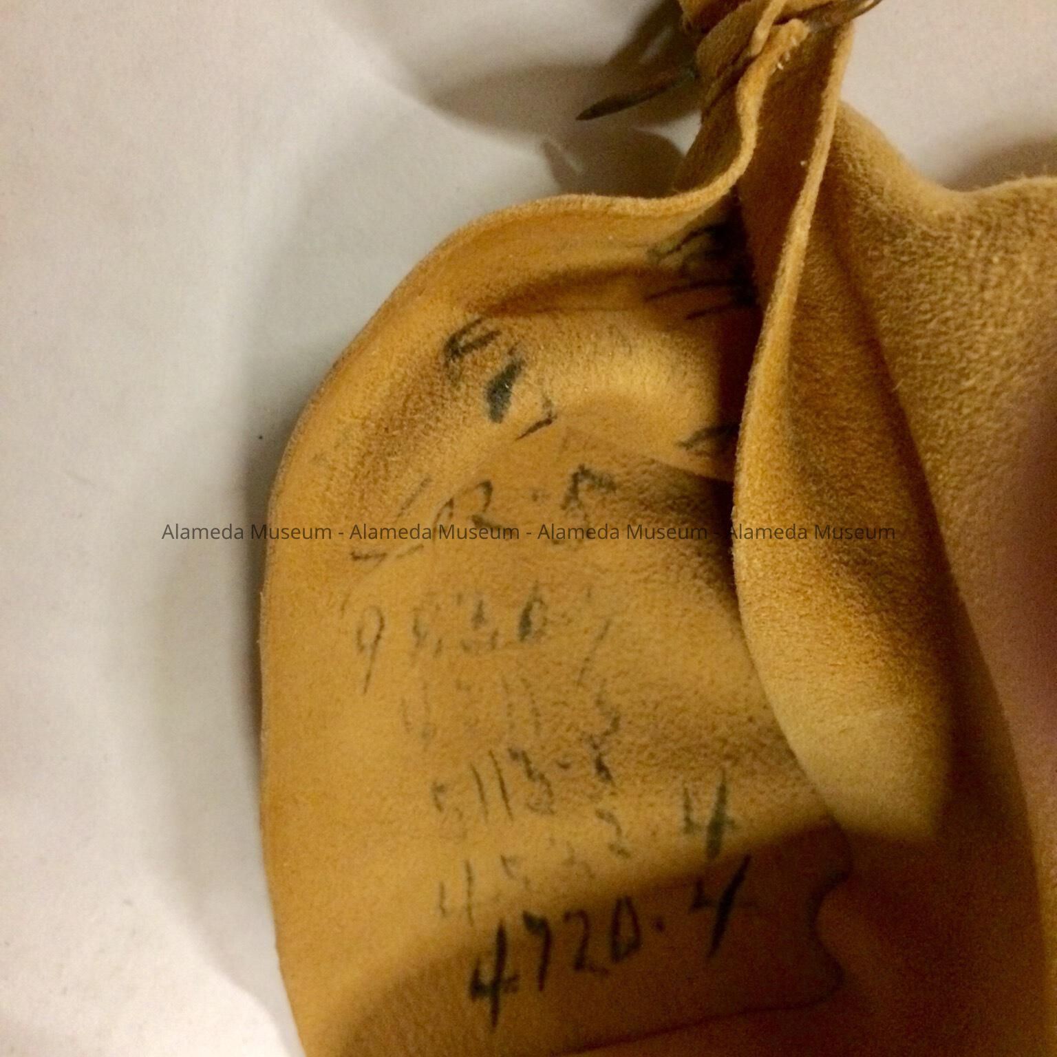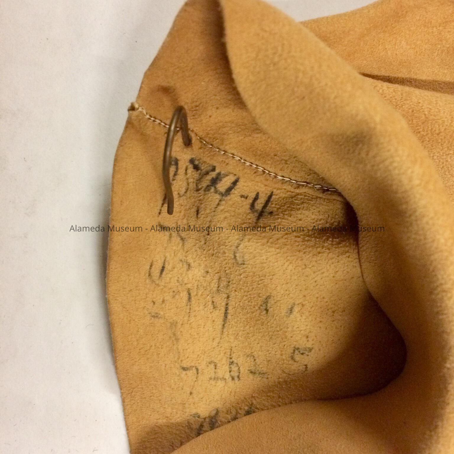 History of Object: Suede gloves of Harriet Holmes Haslett, wife of Samuel M., old-time residents of Alameda. Harriet married Samuel Montgomerie at Christ Church, Alameda, in 1887.