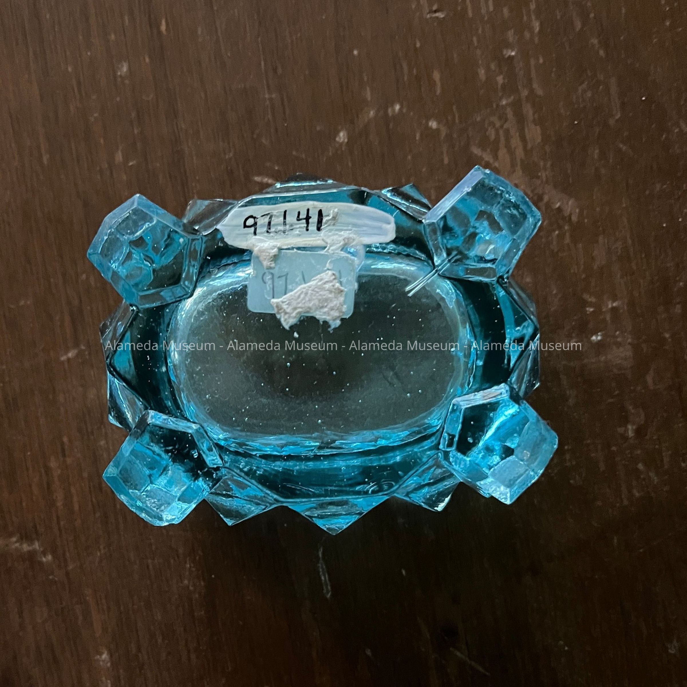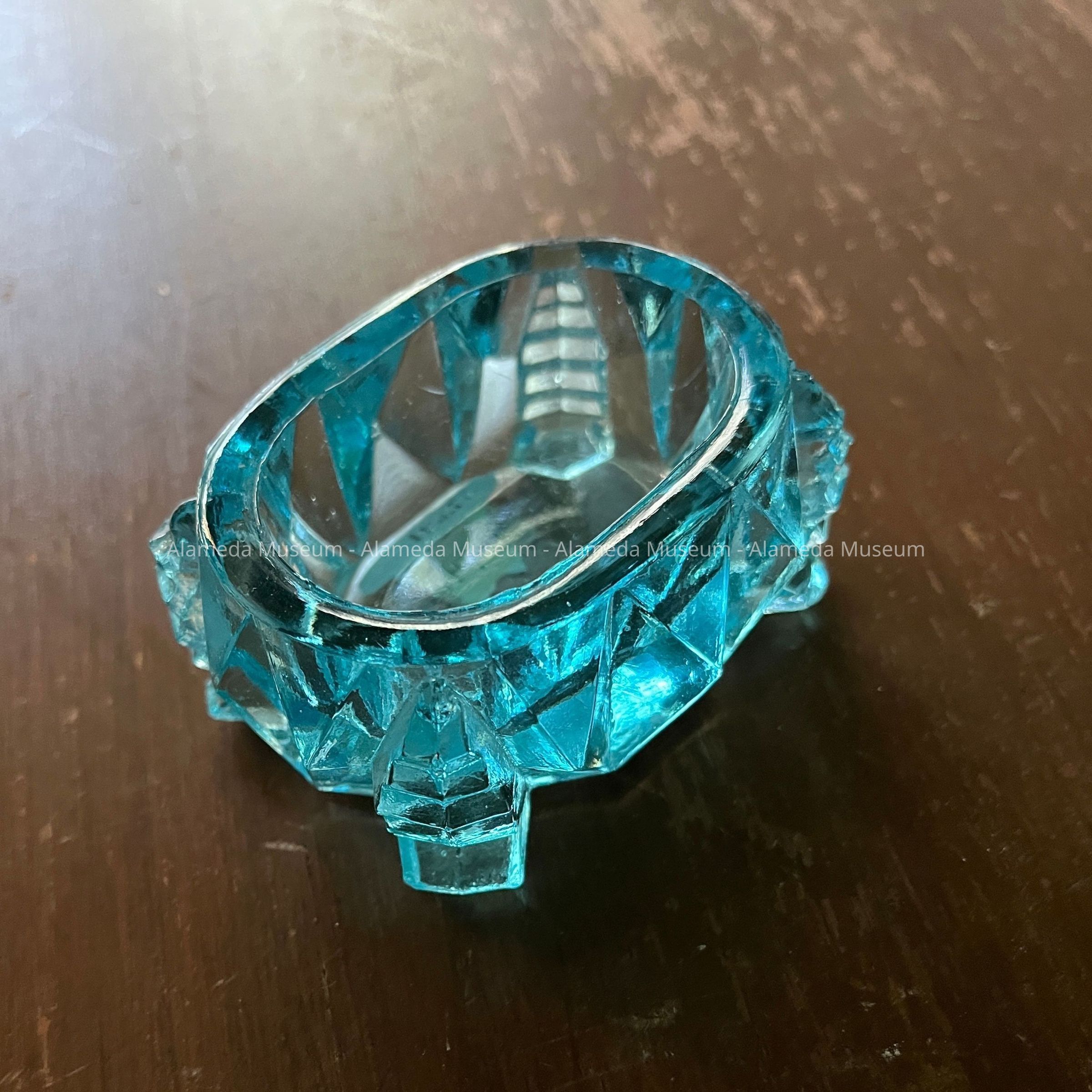 Pale blue pressed glass salt dish of the Meyers family, 1900Entry/Object ID