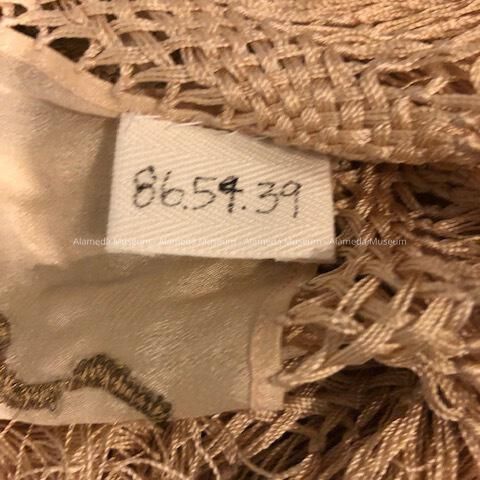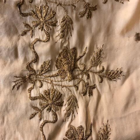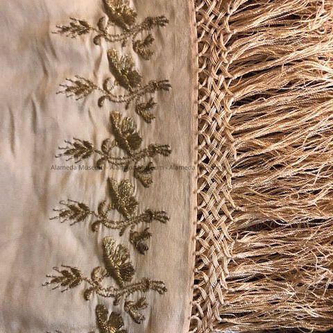 Pale peach silk shawl with gold metallic embroidery, early 1900sEntry/Object ID