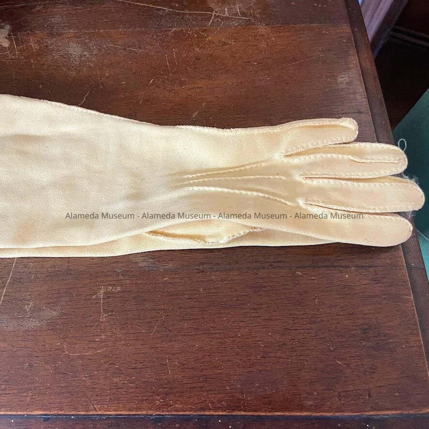 HISTORY OF OBJECT: A PAIR OF YELLOW GLOVES WORN BY ONE OF THE MEYERS' SISTERS.
